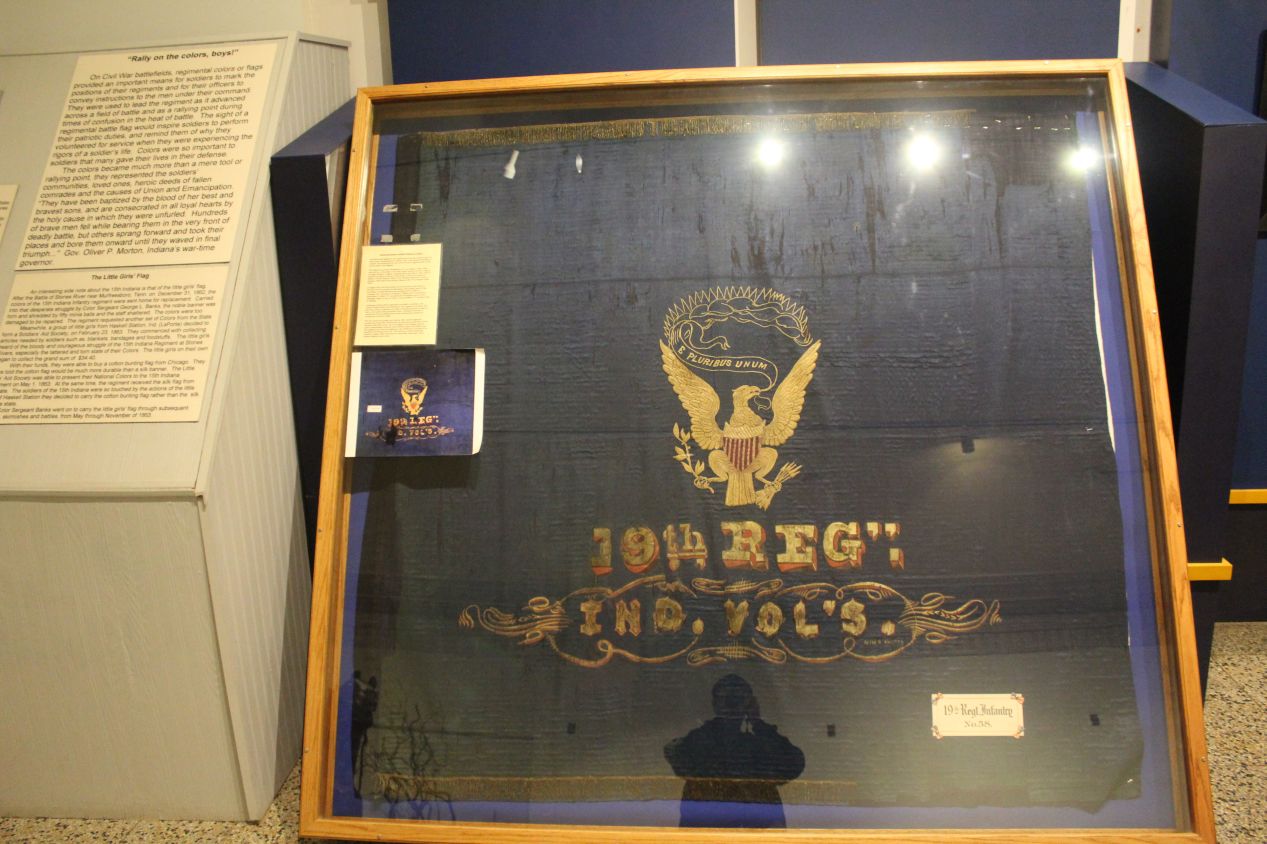 Down in the basement of the memorial was a small museum dedicated to Indiana's military, starting with the frontier period in the early 19th century and finishing with contemporary wars in the Middle East. I enjoyed seeing the Civil War collections the most, including the homemade regimental flags from the initial Indiana volunteers and then a later flag from one of the African American infantry regiments raised in the state. In terms of random artifacts on display in the museum, there was a pamphlet distributed to infantrymen in World War II that discussed how to incapacitate German tanks through the use of improvised weapons like Molotov cocktails. I have no idea why that was up on display on one of the walls but the matter-of-fact nature of the pamphlet (the same style parodied in the Fallout games) amused me. I ended up having to breeze through the military museum faster than I would have liked, as I was already running behind on time. I had been expecting to spend 15 minutes at the Indiana World War Memorial and had already spent more than an hour inside.