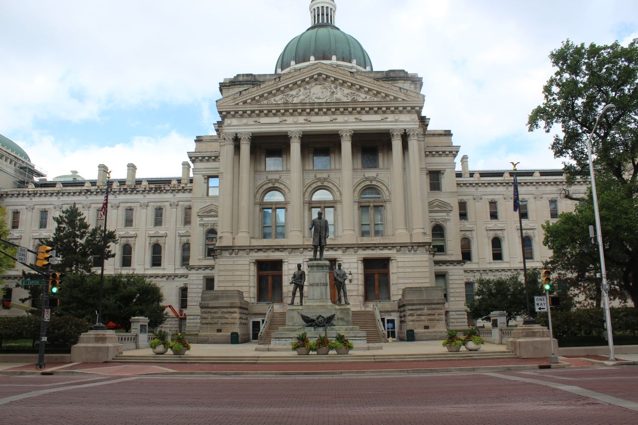 Of course, with it being a Sunday I knew that the Indiana State House would be closed to the public and I would only be able to see the outside of the building. Nonetheless, I was able to walk in a half circle around the structure and get a good look at the capitol building, including passing by a number of statues on the south lawn. The Indiana State House is the seat of government for the state of Indiana, and the fifth such building to be constructed in the state's history. This particular building dates to 1888 and follows the general standard for American legislative buildings: neoclassical architecture with a central dome and two wings to contain the two houses of the legislature. The Indiana State House had a green-colored dome that was significantly larger (and fatter) than the dome I had seen at the Michigan State Capitol the day before. I kind of wish that Indiana had kept their previous state capitol building, which was designed to look like the Parthenon in Athens but had to be condemned in the 1870s due to structural defects. It would have been more distinctive if Indiana's legislature were still using a setup like that.