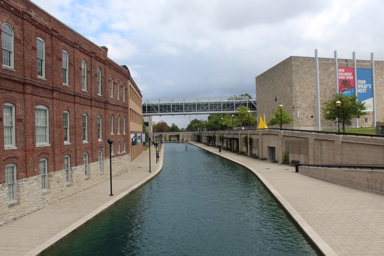 After leaving the Indiana State House grounds, I walked further to the west towards the river that flows through Indianapolis. I passed by the huge convention center, which is probably the building that brings the most people to Indianapolis, but which is also a thoroughly nondescript structure. More interesting was Victory Field, the stadium of the Indianapolis Indians minor league baseball team. Despite the "Indians" name, this is the AAA affiliate of the Pittsburgh Pirates and the team has a lovely small stadium that sits up against the riverfront. I had checked to see if I could catch a game here but unfortunately the Indians were out of town. Nearby the stadium was White River State Park, a green space that ran alongside the river on the west side of the downtown. The Indianapolis Zoo was on the other side of the pedestrian bridge crossing the river, and there was a strip of parkland leading back towards the center of Indianapolis as well. This was a pleasant area to walk around, and the cloudy skies overhead were the only blemish on these pictures.