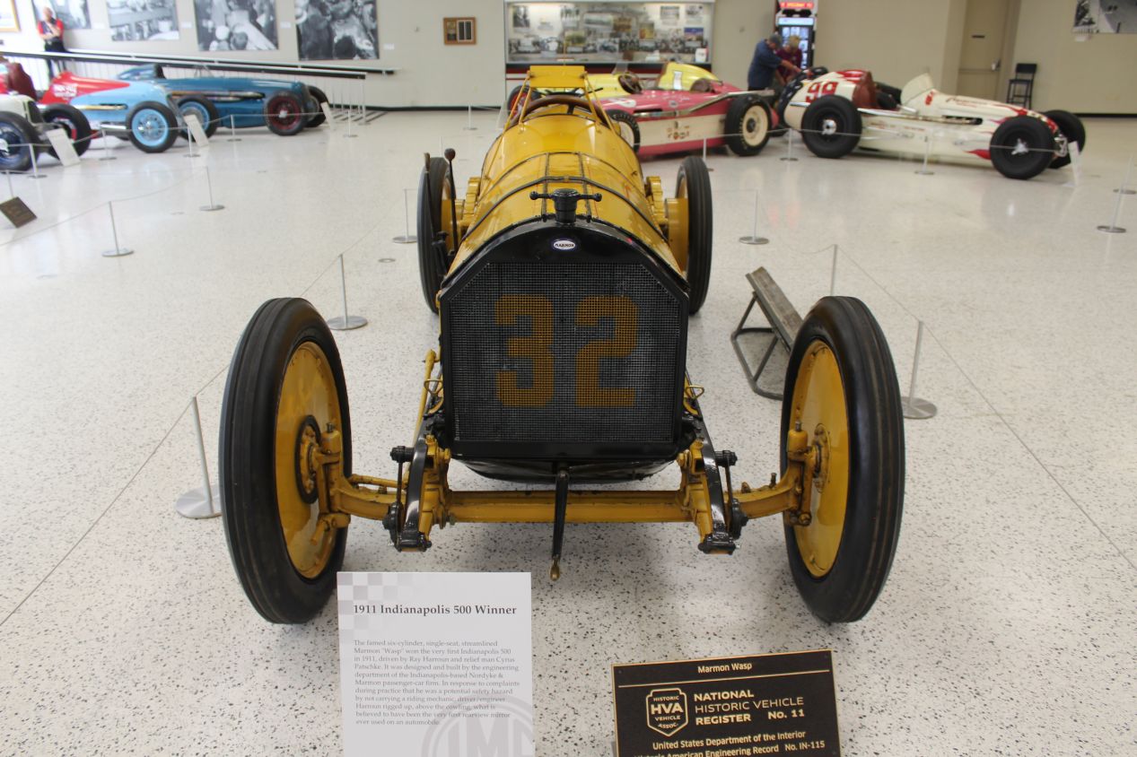 The Hall of Fame Museum was essentially what I was expecting it to be, with lots and lots of historic race cars along with information about the history of the Indianapolis 500. There were dozens of past winning cars on display, including the vehicle that won the initial Indianapolis 500 back in 1911, the yellow-colored Number 32 pictured above. The early cars had a cigar-shaped design with the wheels sticking out on the sides and did not look safe at all. I enjoyed reading about the trials and tribulations that the racetrack had gone through over the years, such as when it nearly shut down for good during World War II at a point in time when the track was essentially abandoned. There was also an exhibit about the Unser family here: three different Unsers across two generations have won the Indianapolis 500, and a bunch of their cars were on display. I'm not much of a car person or a racing fan, and it was somewhat amusing that the first three days of my vacation had all taken me to different museums that featured historic cars. I guess that's inevitable when touring Detroit and Indianapolis, two cities known for automobile manufacturing and automobile racing.