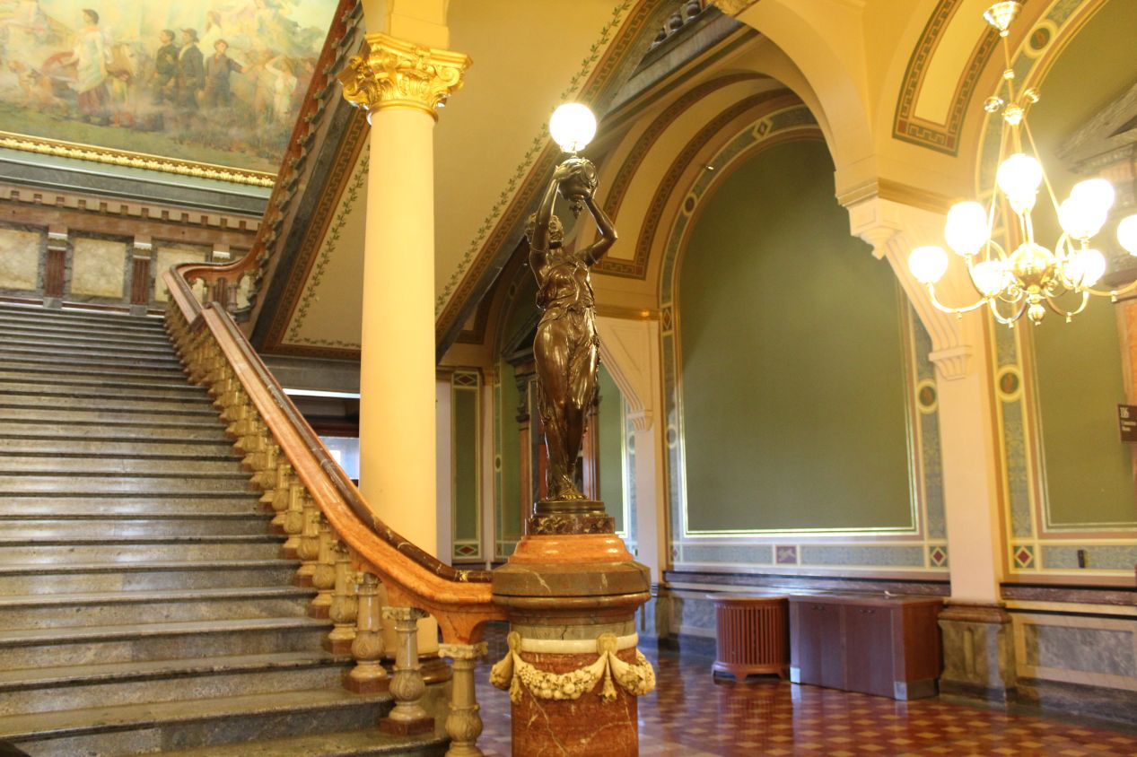 The tour then took the group up to the third floor where the legislative chambers were located. I don't have a lot to say about these particular pictures other than the fact that this was a beautiful staircase. Wikipedia states that this marble grand staircase between the second and third floors is the focal point of the building's architecture, and it was easy to see why.