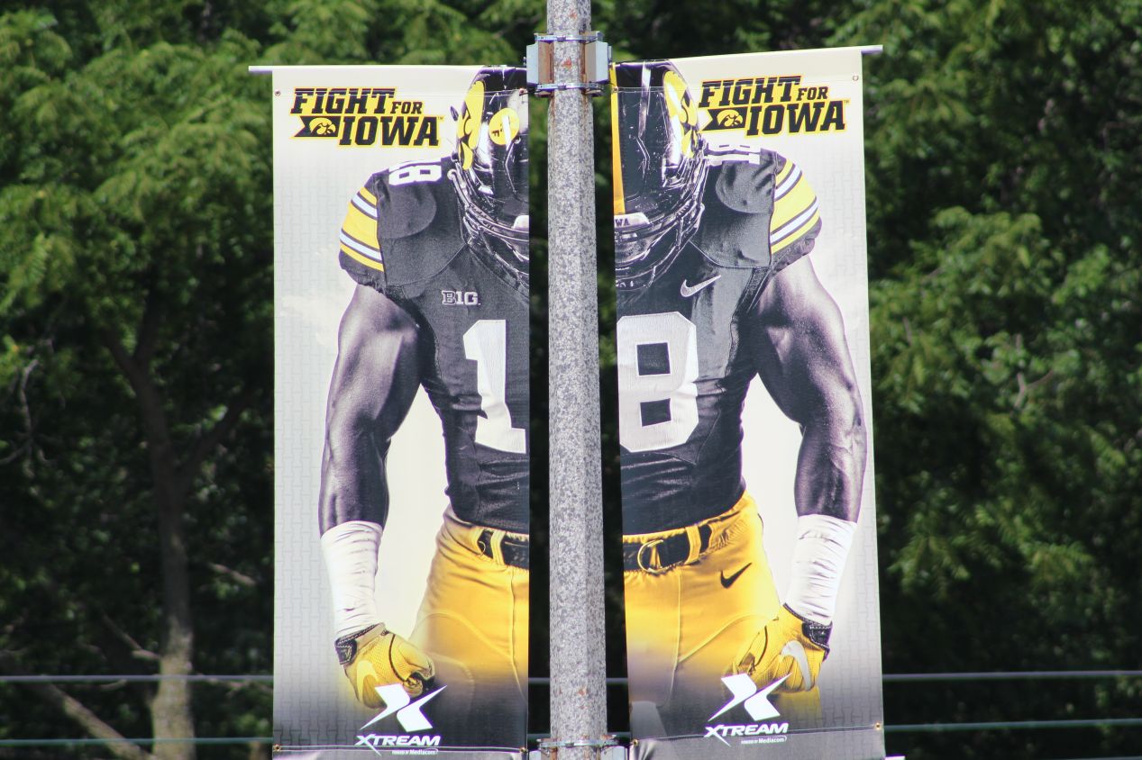 The football team at Iowa plays in Kinnick Stadium, named after Nile Kinnick who was the only player from Iowa to win the Heisman Trophy way back in 1939. He tragically died during World War II and the stadium was named in his honor afterward. Iowa has traditionally had a successful football program that falls just short of true elite status, often sitting around the #15 to #25 area in the national polls. Iowa football won a single national championship back in 1958 and 11 Big Ten conference championships, and this stadium is never an easy place to play a road game. My own University of Maryland team was thoroughly dismantled in their game at Iowa during the 2018 season, losing 23-0 in a game that was even less close than the score indicated. One other tidbit that I'll mention: Iowa's black and gold colors on their football uniforms always look strikingly like the Pittsburgh Steelers. I don't know if that's due to intentional design, or the fact that having the same team colors causes the uniforms to necessarily come out looking similar.