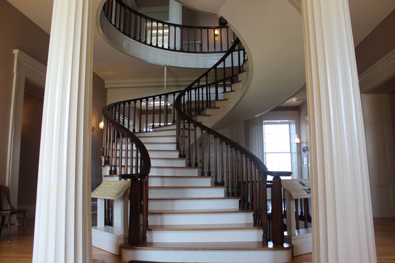The Iowa Old Capitol Building was modeled after the Old State Capitol building in Springfield, Illinois where I had just been the day before. Both of them were designed in the Greek Revival style with a facade of classical pillars at the entrances and a central dome at the top. The Iowa Old Capitol Building seemed to have aged much better over time than its counterpart, and it appeared in pristine condition when I visited. The interior of the building had the same design as well, with a central staircase immediately greeting visitors and leading up to the second floor. The ground floor contained the original home of the Iowa Supreme Court, the humble-looking room with the white fence running across the center. This was also where the Iowa state government was once housed, with the first three governors in Iowa's history working out of the blue-colored room pictured above. The governor's office was then later used as the administrative office of the university president for several decades before being restored and transformed into a museum.