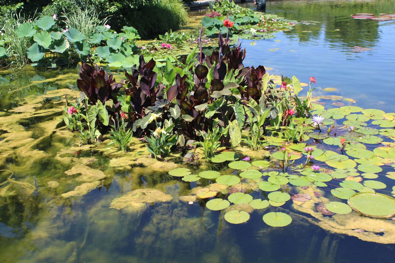 I crossed back to the eastern side of the river and then headed north, walking for about 15 minutes until I reached the Greater Des Moines Botanical Garden. This has been an attraction in Des Moines since the 1930s, although the current location with the big dome dates back to 1979. The geodesic dome was reminiscent of the design used at Disney's Epcot park, albeit on a much smaller scale, and it's needed to keep the tropical plants inside sheltered from the harsh winter conditions that prevail in central Iowa. The temperature inside was a toasty 92 degrees Fahrenheit (33 degrees Celsius) when I visited, and the plant life resembled the greenery that I'm used to seeing in Florida. There was also a separate and cooler indoor area for more temperate plant life, the place with the wooden beams running overhead. I don't know very much about plant life and I'm terrible about growing anything, but this was still fun to see. Not at all what I would have imagined coming across in central Iowa.