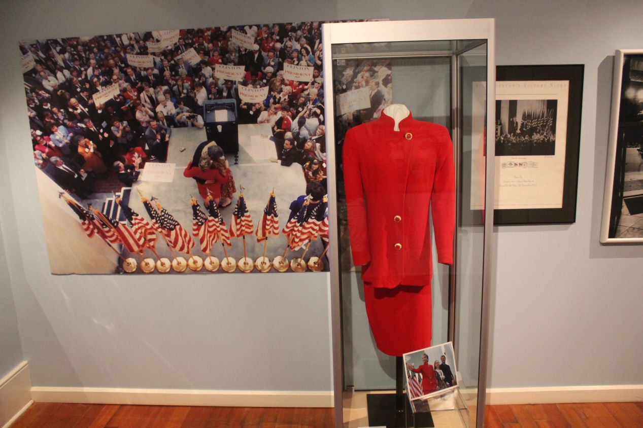 These gowns came from several different decades and reflected the changing fashions associated with what the governor's wife was expected to wear at various state functions. (There's never been a female governor of Arkansas and therefore no chance to display whatever the appropriate garment would be for the First Gentleman.) As usual, the place of prominence was given to outfits worn by the Clintons, in this case both Hillary Clinton as First Lady of Arkansas and daughter Chelsea Clinton as a teenage girl. Other parts of the exhibit had formal dresses dating back to the 1950s from various other families. This area seemed to be the most popular part of the Old State House Museum despite its strange location, and it was the only place outside of the legislative chambers where I saw other tourists walking around.