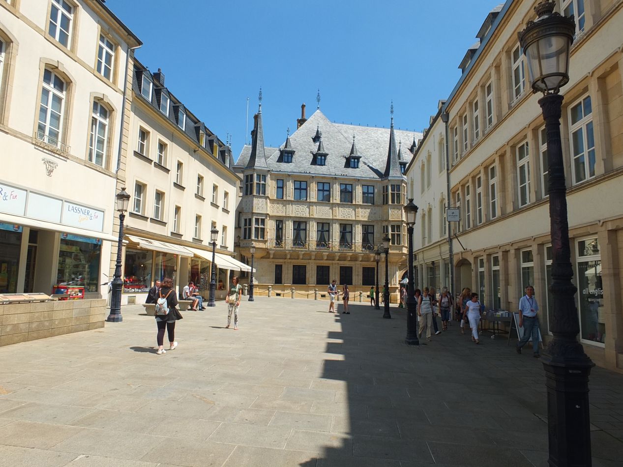 A short distance away from the central square was this building, the Grand Ducal Palace of Luxembourg. It is the official residence of the Grand Duke, the hereditary monarch of the country. Like the other Benelux countries, Luxembourg is a constitutionary monarchy, albeit with a grand duke instead of a king. This particular building was originally the city's town hall before being appropriated by the ducal family in the 19th century. It dates back two hundred years earlier to the 17th century, and much like other royal residences, a ceremonial guard patrols back and forth outside the entrance. I had been hoping to take a tour of this building, but it was not open to the public when I visited. The staff asked me to come back in three weeks, which wasn't particularly helpful. Instead, I'd have to make due with these views from the outside.