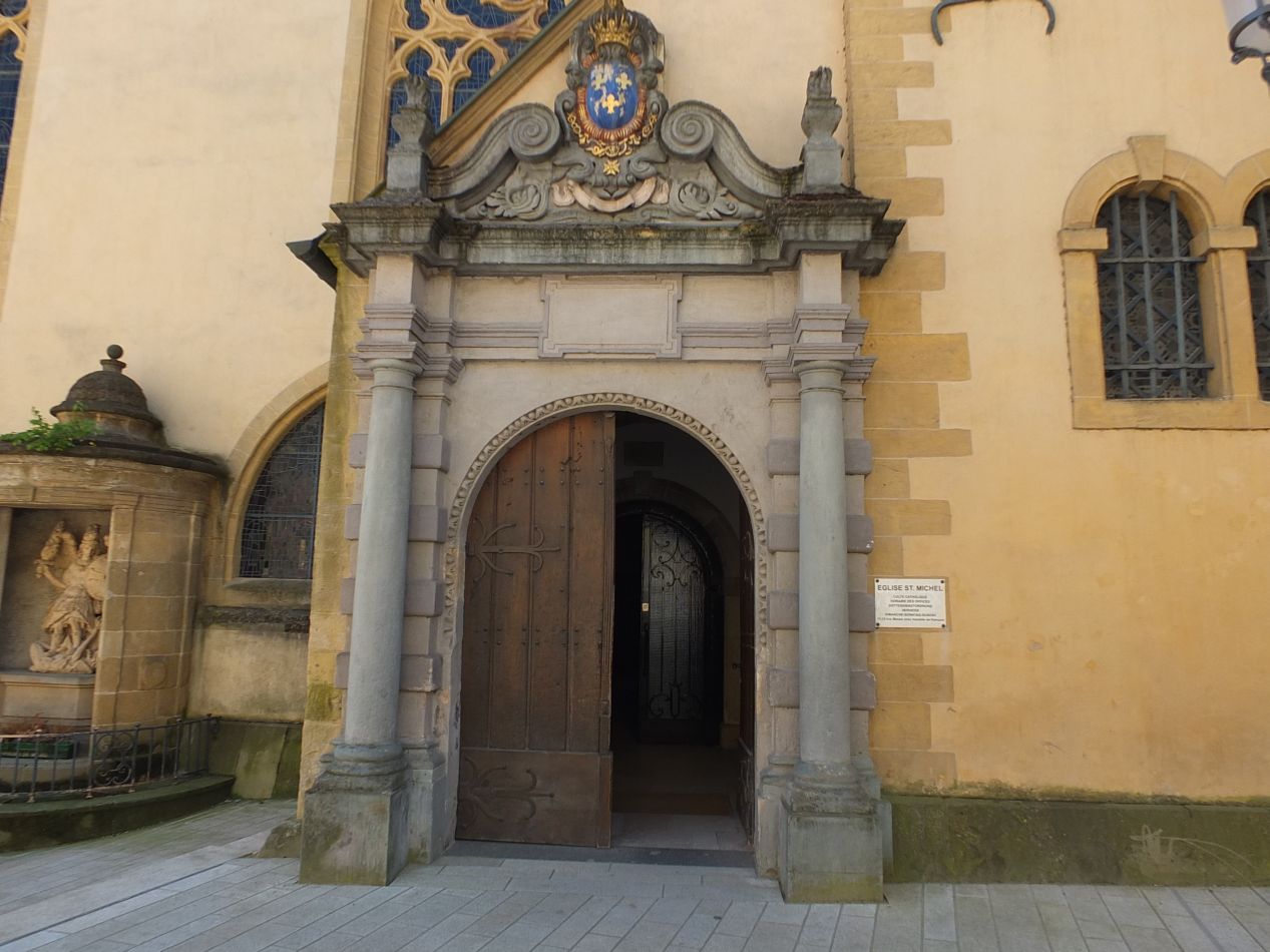 The streets near the Grand Ducal Palace were winding, narrow, and hilly. I ended up wandering around a bit, getting lost somewhat in the twists and turns without being worried overmuch. One of the streets led me here, to the Church of St. Michael (Église Saint-Michel), the oldest church in Luxembourg City. This building was even smaller than the Notre Dame cathedral, and could probably be better described as a chapel than a full church. The familiar stone pillars held up a low ceiling, and there was little room for stained glass here. The altar held a featured painting that was reminicent of some of the Italian churches that I had visited a number of years ago. This particular spot has held a church of some kind since about the year 1000, next to the original castle built atop the city's main hill. This particular building is more recent, constructed at about the same time as the Notre Dame cathedral in the 17th century. With its small size and hidden location tucked away on this side street, it would be easy to miss in passing.