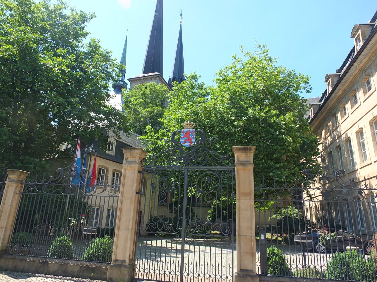 Because Luxembourg City is so compact, all of the important buildings are right on top of one another and easily walkable from one to the next. I passed through this small square near the Ducal Palace, and unexpectedly found myself next to the Chamber of Deputies, the location of the Luxembourgish parliament. There was no one guarding the door and it was unlocked; in these situations, I've found it better to beg forgiveness than ask permission, so I headed on inside. I was not able to get a view of the legislative chamber, however, as there were security officials on the inside who weren't too keen on anyone wandering around and taking pictures. Still, it speaks to the more laid back and familiar attitude of a small country like Luxembourg that I was able to enter this building at all without anyone batting an eye. This definitely would not happen in the US.