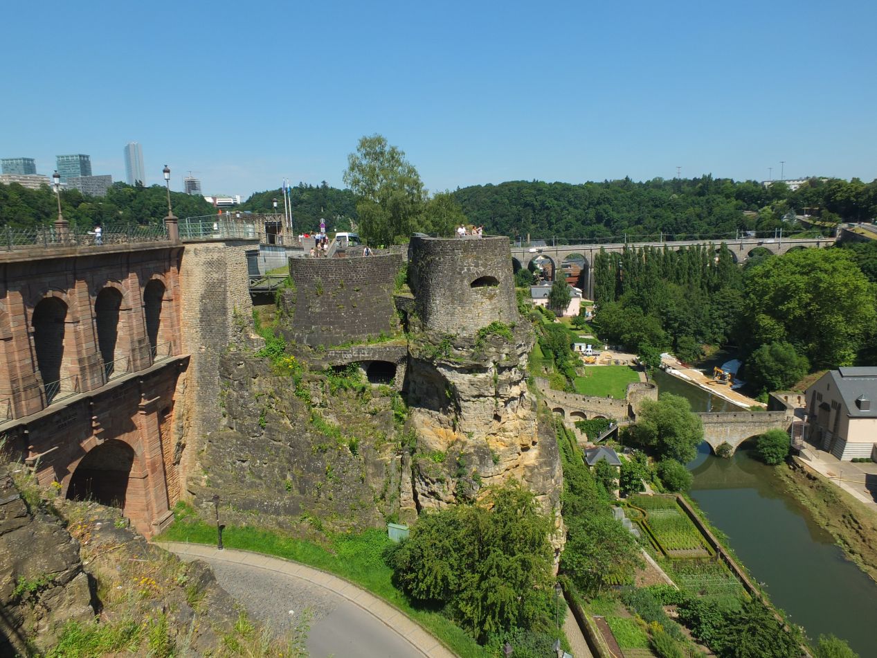 Finally, I headed out of the historic city center and off to the east, onto the small head of land where the original castle of Luxembourg had first been constructed. The view from atop these cliffs is the most famous aspect of Luxembourg City, this stunning vista that looks down on the picturesque medieval town and the little river that flows through it. These cliffs are the whole reason why the city exists at all, forming a powerful natural barrier against invaders. The remnants of the original medieval fortifications can be viewed in one of these pictures, and the cliffs themselves were hollowed out over time with a series of tunnels designed to be used against potential attackers. Even with modern roads and staircases to connect the terrain together, and no one trying to shoot back in defense, getting up and down the cliffs was no easy task. I would not have wanted to try to take Luxembourg City with an army, definitely not. It's one thing to read about places with stout natural defenses, like Luxembourg or Quebec or Gibraltar, and another thing entirely to see them in person.