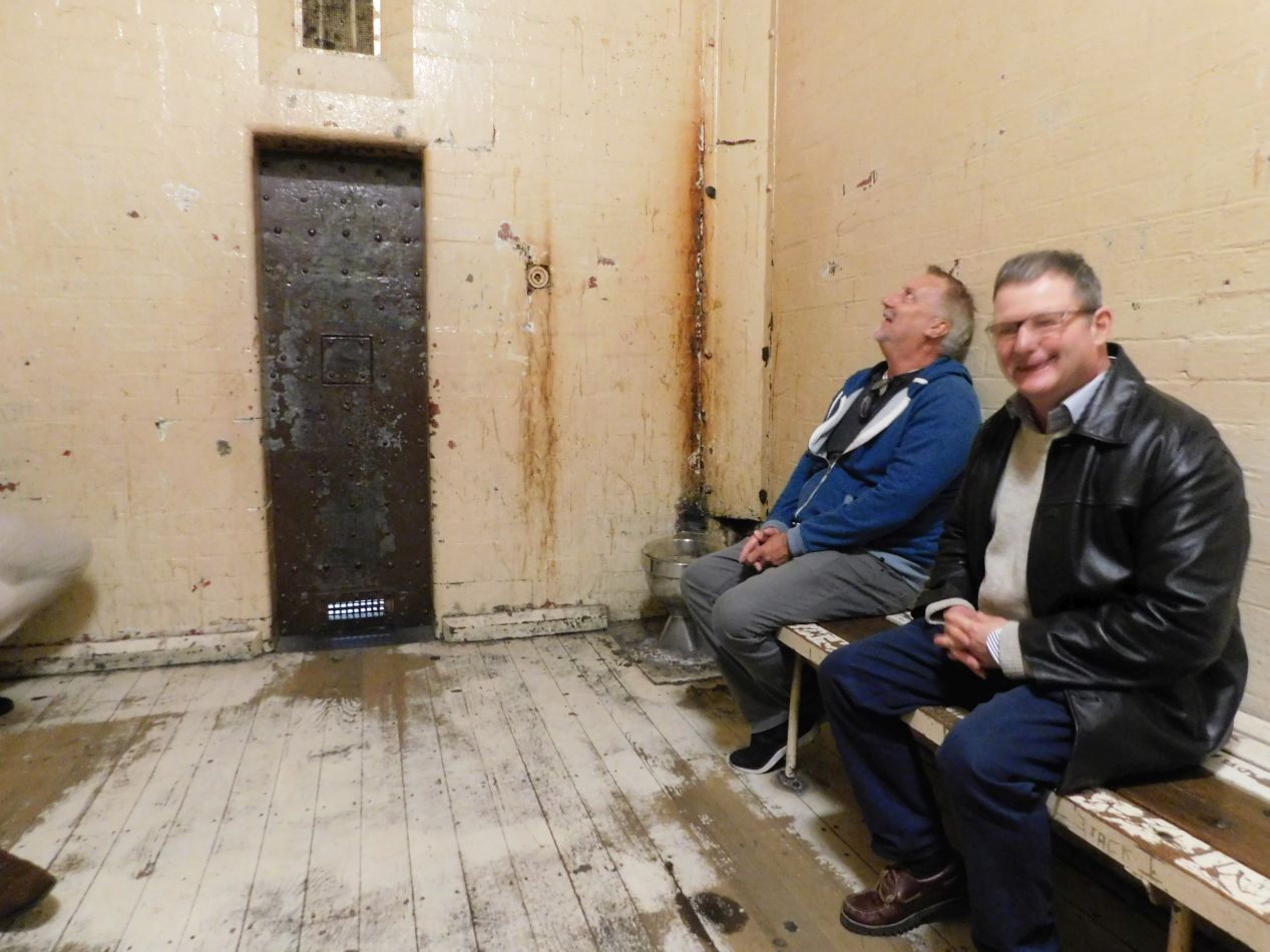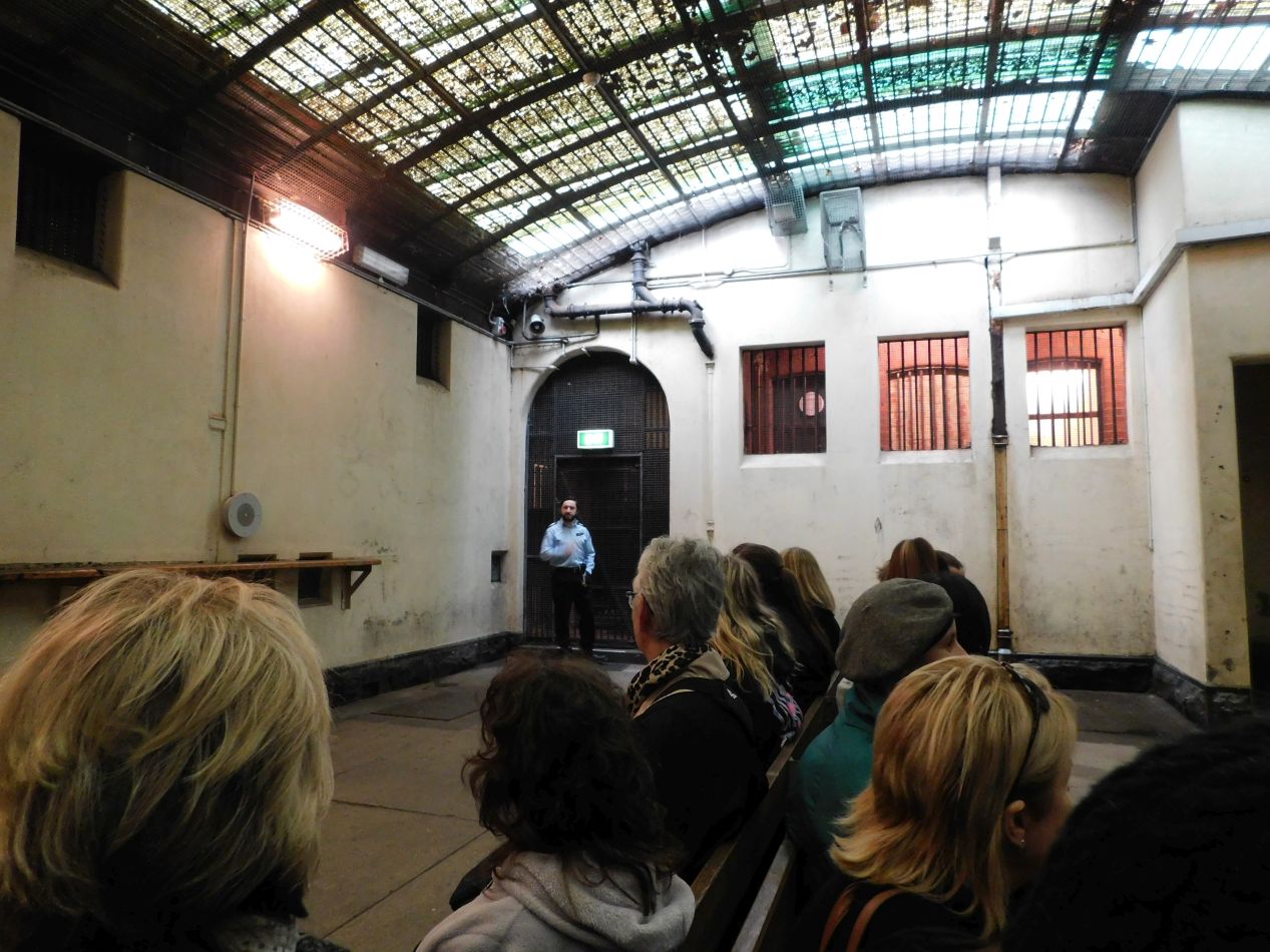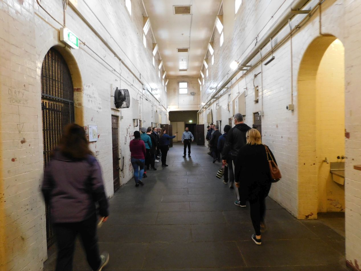 In addition to the historic 19th century portion of the gaol, tourists to this attraction also had the opportunity to take part in something called the Watch House Experience. This was a form of interactive performance, in which an actor dressed up as a policeman pretended to throw everyone in our tour group into prison, walking us through the steps that inmates would have experienced behind bars. The building used for the Watch House tour was a more modern building dating from the 1950s and used up through the end of the 1980s, and it was not a true prison but instead a holding cell where those who had been arrested would stay for a night or two before being tranferred elsewhere on a more permanent basis. The dozen or so individual cells were suitably dingy and rundown, and included one cell with drains in the middle (for the drunks who would be leaving a mess behind) and another padded cell for mentally unstable individuals. The actor who led our tour group was fantastic, barking and shouting at the individuals on the tour in the way that I imagine the actual police would have done. This was highly entertaining and we'd definitely recommend it to anyone visiting Old Melbourne Gaol.