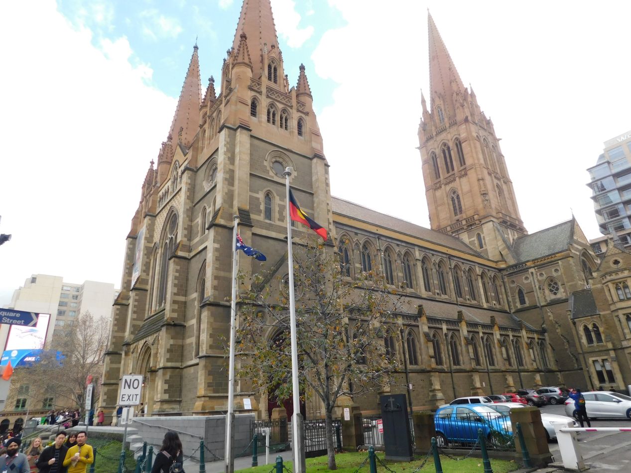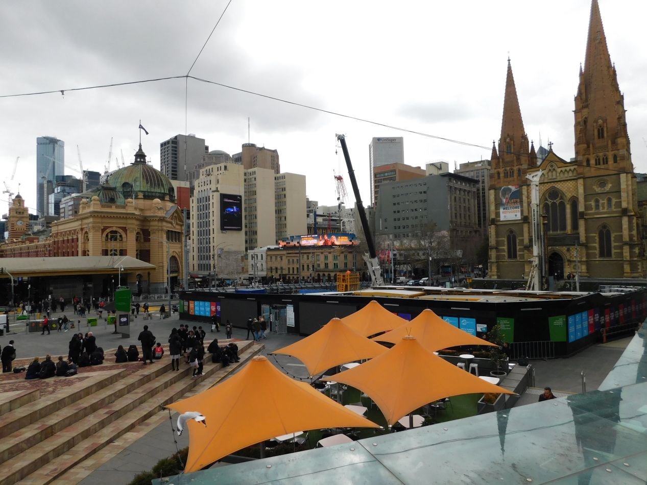 Saint Paul's was located in the heart of the city of Melbourne, across the street from Federation Square and Flinders Street Station. The latter building is the railroad station at the center of Melbourne's transit system, and the iconic green dome of Flinders Street Station has served as the default symbol of Melbourne for decades. The main station was built in 1909 in an Art Nouveau style that made it instantly recognizable to visitors and city residents alike. I didn't know a whole lot about Melbourne before this trip and even I had seen pictures of Flinders Street Station a bunch of times in various random places. The old school charm of the historic railroad station provided a fitting contrast to the recently constructed Federation Square on the other side of the street.