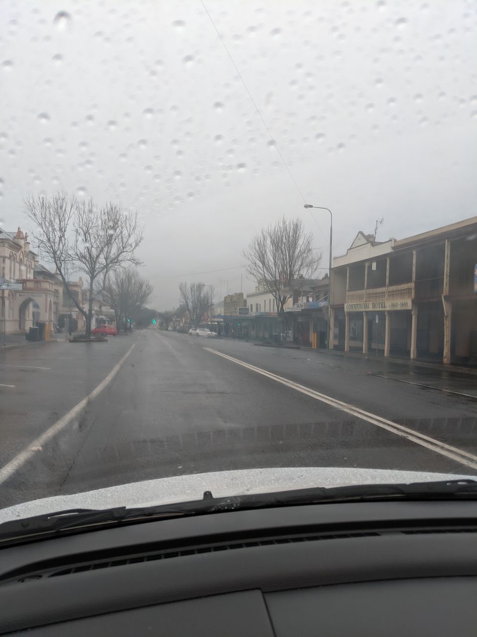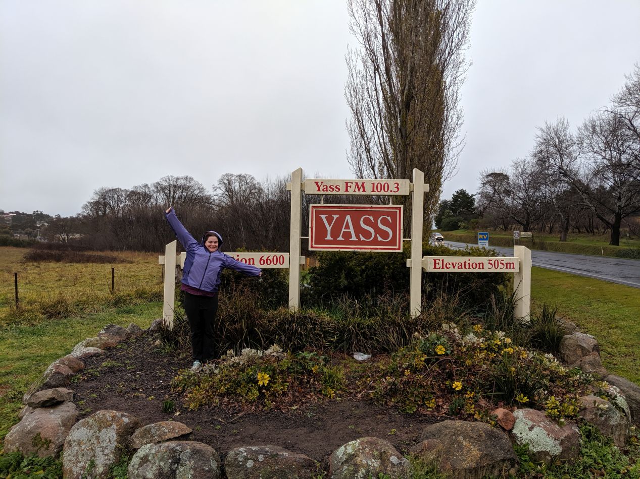 We made a stop about an hour's drive outside of Canberra at the small town of Yass. Liz wanted to stop here because the name of the town apparently corresponds to the use of the word "yaass" which has become a meme in recent years. Know Your Meme defines "yaass" as an excited affirmative statement or word of encouragement used in favor of someone's style or appearance, and explains that the phrase is often associated with use by gay men. Apparently the show Queer Eye filmed an episode in this town specifically because of the coincidental association with the town's name. There was very little taking place in Yass at 7:00 AM on a rainy Sunday morning as we drove through the historic downtown, which had more of a Wild West feel than anything else. I wasn't terribly interested in this stop and we only stayed for a few minutes before continuing onwards.