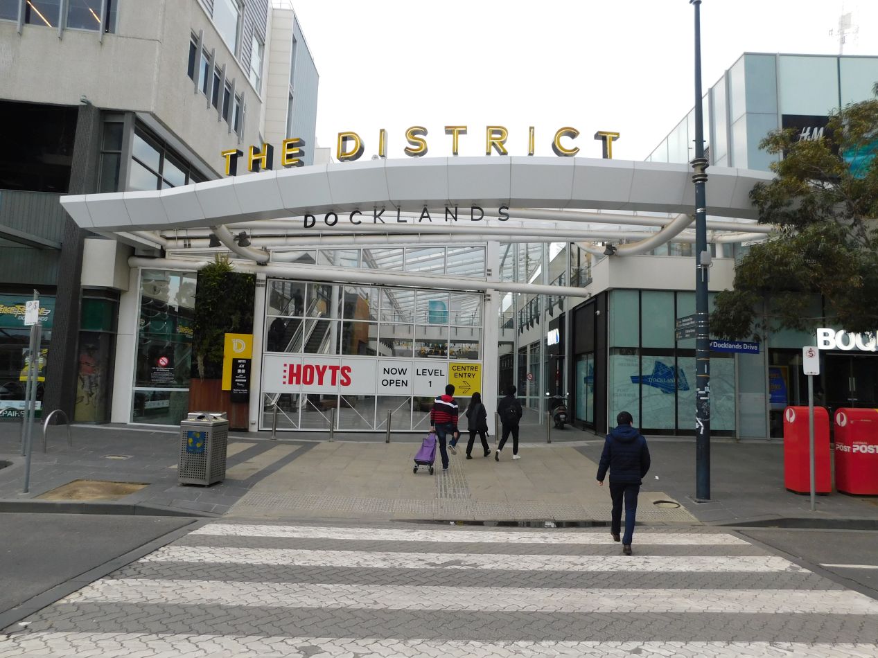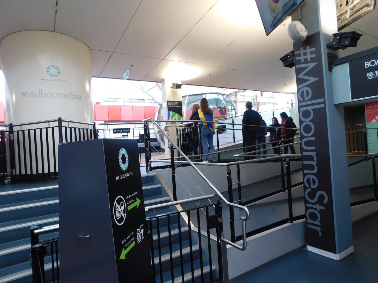 The daylight was starting to run out at this point so we headed off to our last major attraction for the day. We rode Melbourne's light rail system (for free since it was within the center of the city - have I mentioned that Melbourne's transportation system is awesome?) over to the Docklands area on the western side of the downtown. This was a former industrial area that's currently in the process of being redeveloped into a commercial district, with new stores and restaurants still in the process of construction when we visited. We could tell that "The District" shopping area that we were passing through had only been open for a short time, and many of the planned storefronts were still looking for retailers to fill them. Liz had brought us here for a final surprise event: taking the Champagne Tour on the Melbourne Star Ferris Wheel. This was a fantastic way to see the city from above, and we were able to skip the (very short) line for the wheel and board immediately. The staff handed each of us a glass of champagne and we were off on our rotating tour of Melbourne.