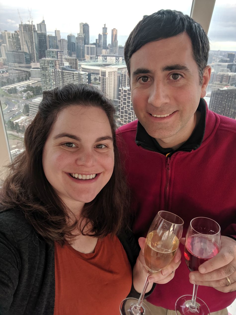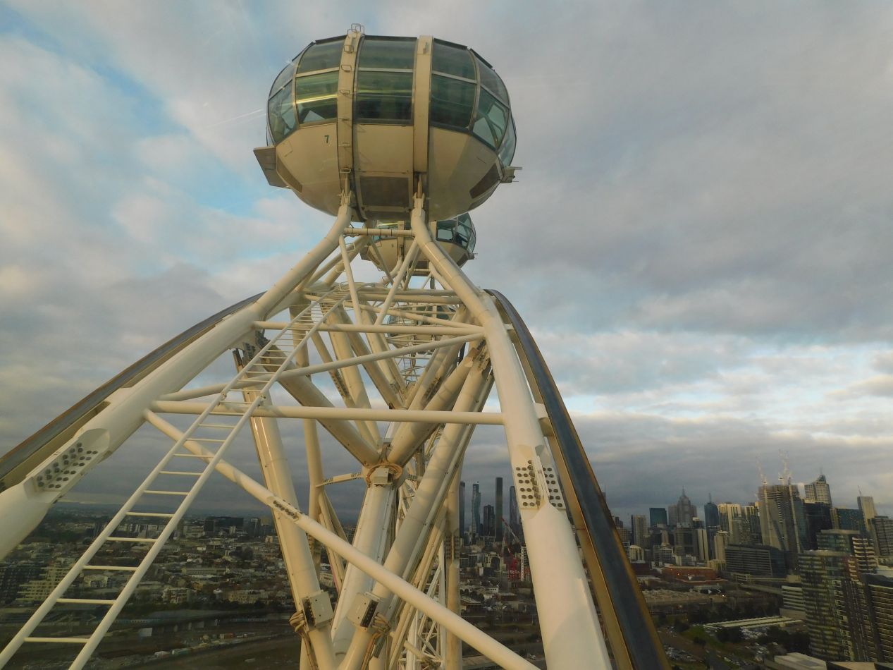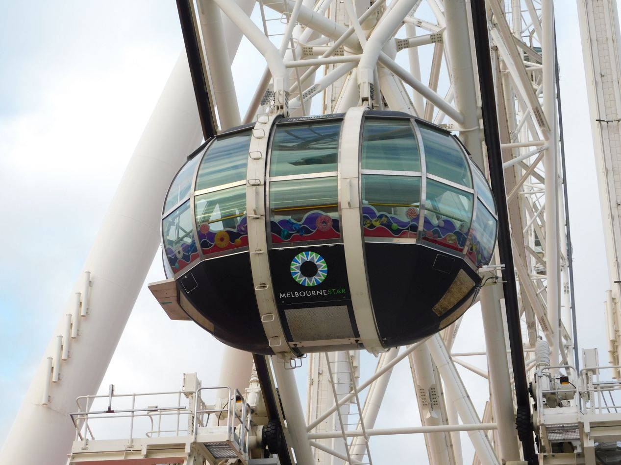 We were treated to wonderful views of Melbourne from the top of the wheel, the perfect time to drink a toast and enjoy our glasses of champagne. Melbourne's skyline was easily visible a couple of miles off to the east, with more new buildings under construction with their accompanying cranes. Off to the south, we were able to look far out into Port Phillip Bay, if not quite far enough to see where it narrowed to a point before opening up into the waters of the Bass Straight. In the opposite direction, we could look to the north far enough to see the "cheese stick", the yellow steel beam known as an iconic local landmark that we'd passed on the road into the city the day before. Even if the setting sun was somewhat obscured by clouds, this was a perfect way to close out our day of sightseeing, and a great choice for our final surprise activity.