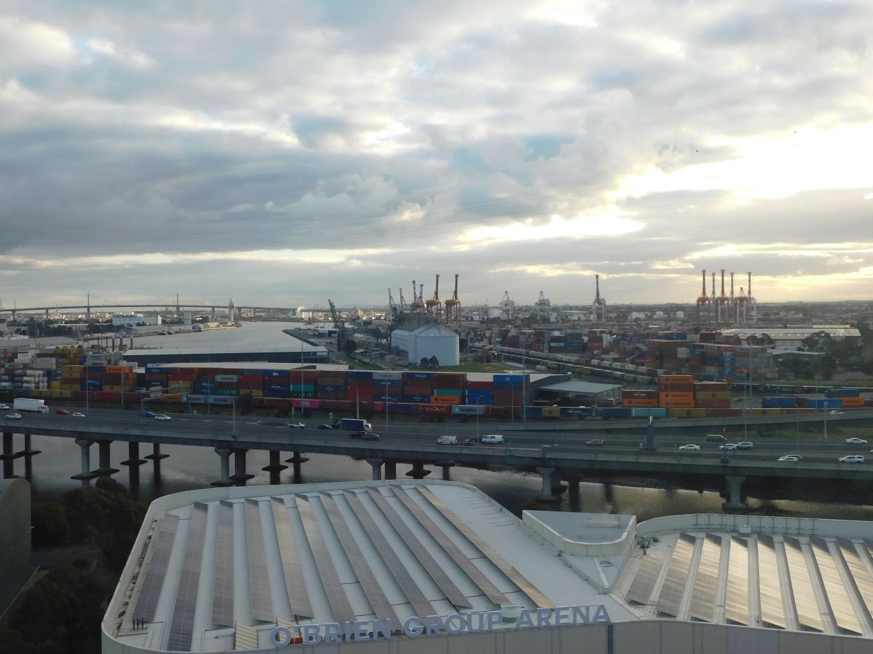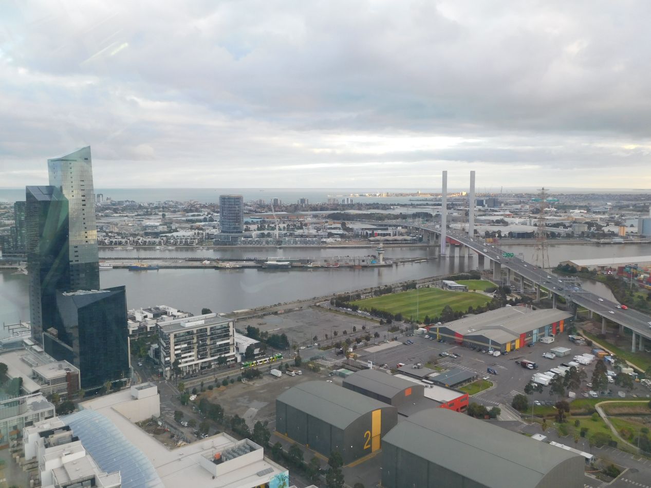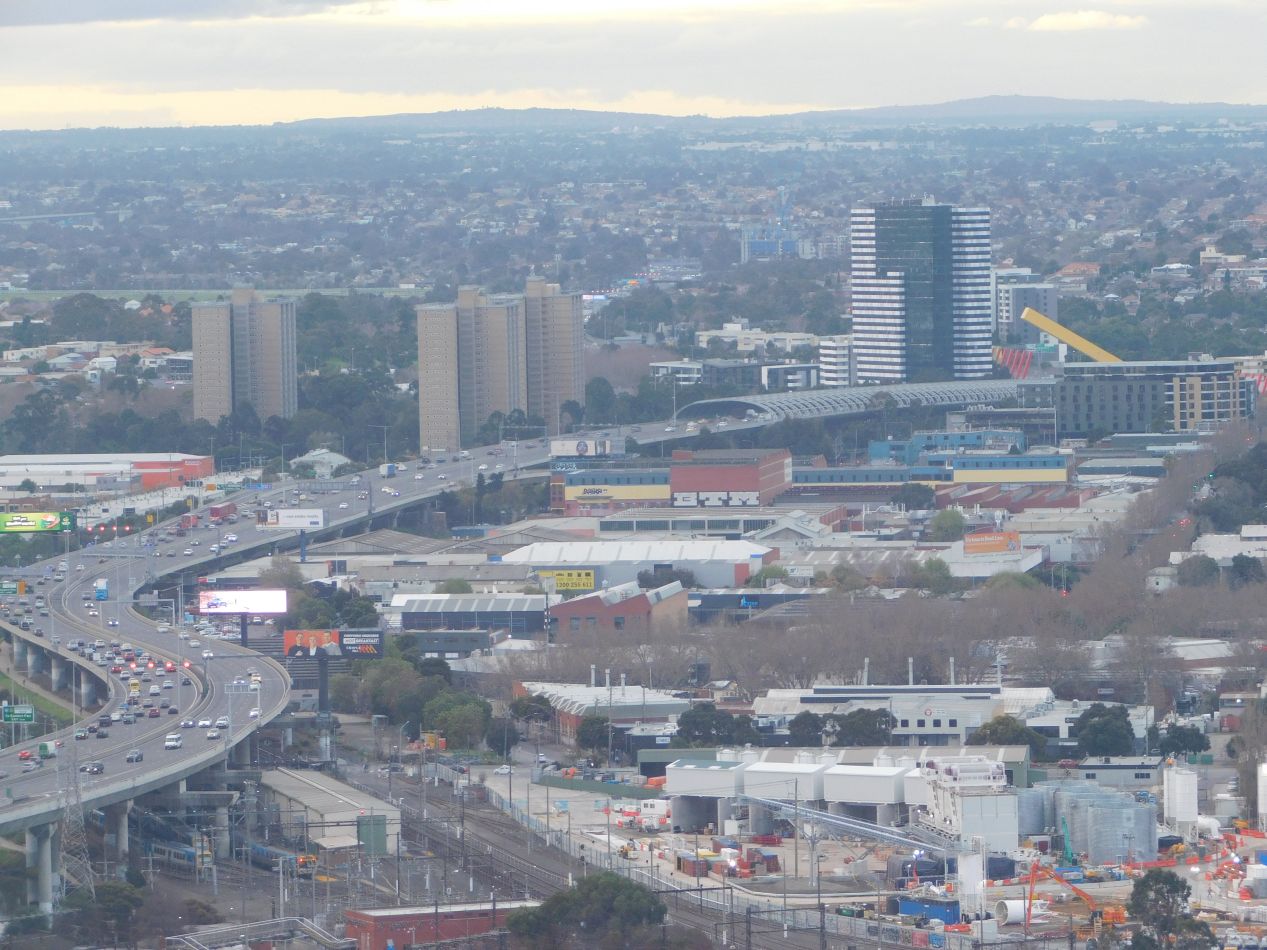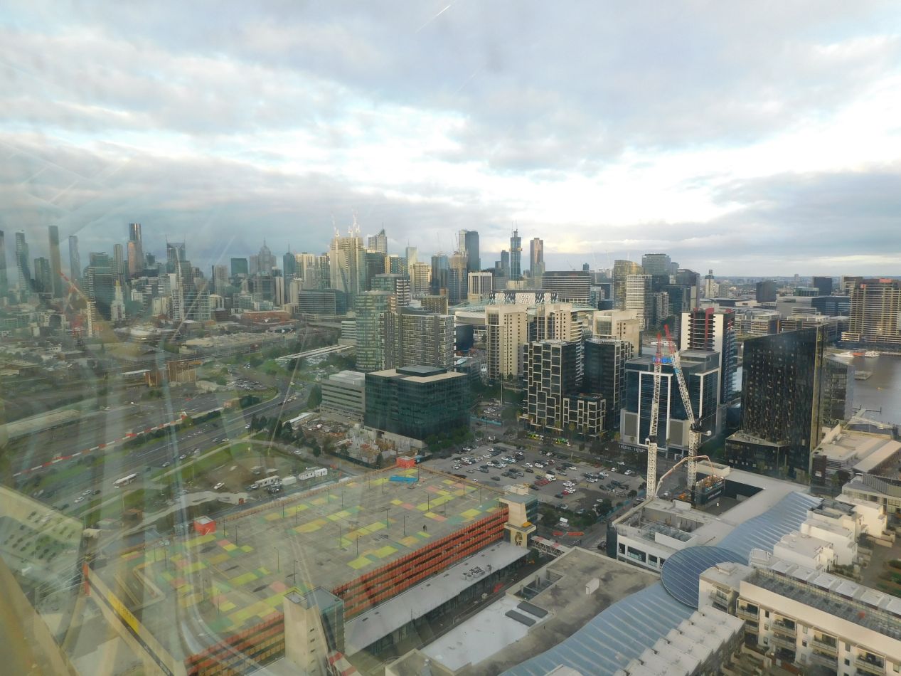 The Melbourne Star stands 120 meters / 400 feet tall and was the tallest Ferris Wheel in the Southern Hemisphere at the time we visited in 2019. It was supposed to open in 2006 but was plagued with severe construction delays, which ultimately necessitated disassembling the entire wheel and rebuilding it from scratch out of safety concerns. It did not open for the public on a permanent basis until 2013, and the Melbourne Star was still new enough that many of our travel guidebooks didn't discuss it. The views from outside of our glass pod differed sharply depending on which direction we looked, with the south and west holding mostly industrial cranes and shipping containers. Melbourne is a major port city and this was where goods were loaded and unloaded - that "Docklands" name wasn't just for show. The better views came from looking to the east, in the direction of Melbourne's city center where we had spent the rest of the day up to that point. With each minute that passed, the wheel continued to rotate and place us higher and higher above the ground, offering up better views looking off into the distance.