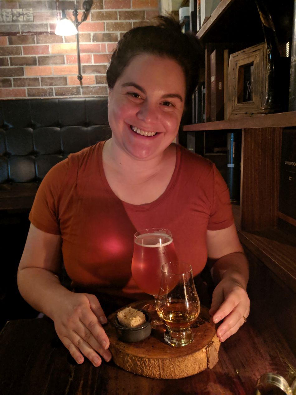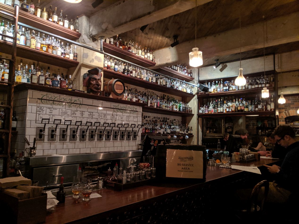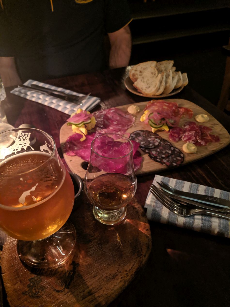 As nice as the glass of champagne had been, we decided to up the ante by getting dinner this night at a restaurant known as the Boilermaker House. Liz had seen this place mentioned in an Instagram post before we took our trip, and we'd circled it as a place to eat dinner when we visited Melbourne. There are lots of places that brew their own beer and offer a flight of four or five different options to taste; Boilermaker House did essentially the same thing, only they did it with whiskey instead of beer. I've certainly never seen as many different types of hard liquor as they had for sale here, with an absurdly well-stocked bar area that had five different levels of shelving. We enjoyed a charcuterie board along with some very good spirits, and while Boilermaker House wasn't a cheap option, it was an excellent choice.