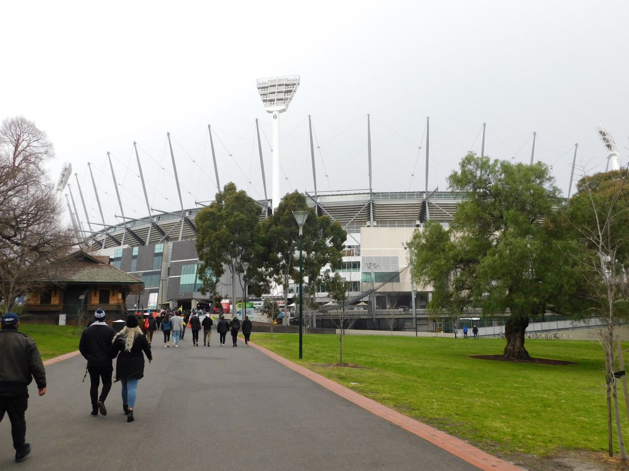 We had booked tickets well in advance to see an Aussie football match at the Melbourne Cricket Ground (MCG), Australia's most famous sporting arena. The MCG has existed in some form since the 1850s (albeit with many renovations over the decades), and this stadium served as the primary venue for the 1956 Olympics when they were hosted in Melbourne. The MCG is the largest stadium in the Southern Hemisphere and can hold a capacity crowd of just over 100,000 people for its biggest events. It is most famously known for hosting test match cricket, which continues to be held here on an annual basis, and Aussie football matches like the one that we were about to witness. Melbourne was the birthplace of Aussie football and almost half of the teams in the current AFL are based in Melbourne or its suburbs. This was the Australian equivalent of going to watch a game at Wrigley Field or Madison Square Garden, and it was an experience that I'd been anticipating for some time.