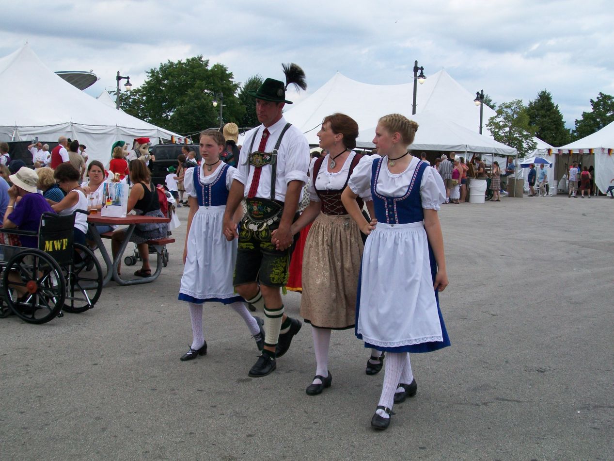 We walked back to the lakeshore and found ourselves stumbling into a GermanFest celebration taking place on the waterfront. We had no idea that this was going to be taking place but figured "why not?" and ended up attending the GermanFest. I mentioned before how the city of Milwaukee was known for having a tradition of significant German immigration, and that was reflected in this continuing festival. There were dozens of people in traditional German attire, including the man pictured above who was surprisingly grumpy for someone with three women on his arms. There were performers singing and dancing traditional German songs, along with cuckoo clocks and old musical instruments for sale. We ended up eating dinner here and spent more time than we'd been expecting at the festival, long enough that it was growing dark by the time that we were ready to leave. It was one of those unplanned events that can make traveling such a delight to experience.