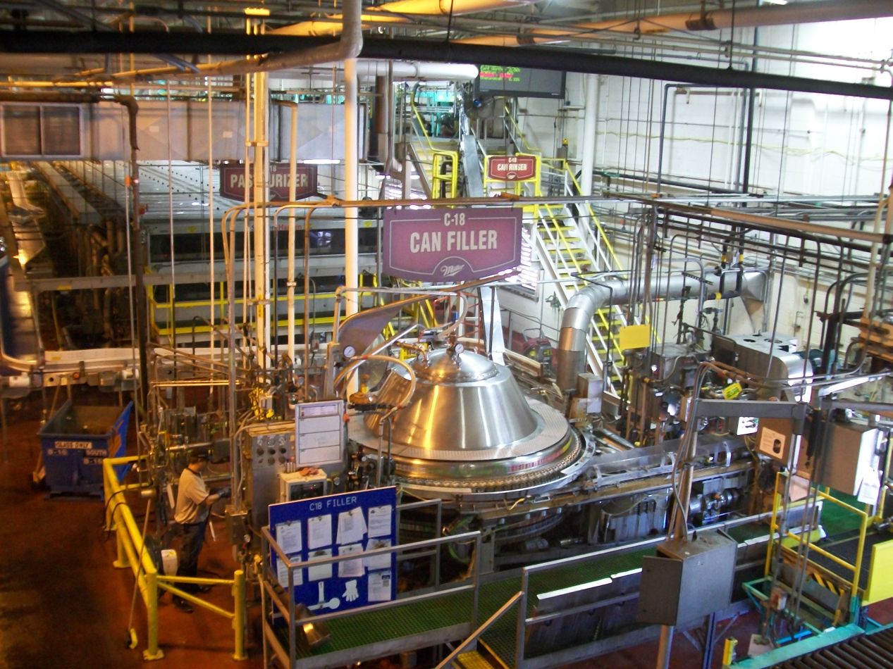 The entrance to the factory tour had a list of all the different beer brands owned under the same corporate group. This is something that there's little public awareness of in the United States: yes, Miller and Coors are both part of the same ownership group (unoriginally named MillerCoors). If you watch their advertising closely, both of them go after the Budweiser family of beers but never attack one another. There are a whole bunch of other brands that are also owned by MillerCoors: Molson, Blue Moon, Icehouse, Foster's, Killian's, Mickey's, and half a dozen other logos pictured above. Like many other economic sectors, there's been a great deal of consolidation in the beverage industry in recent decades, although they at least face competition from microbrewers and the like. Miller was originally the lead partner in the merger when it first took place in 2007, but since then Coors has gained sole ownership in 2016. Ironically, the Miller corporate entity no longer owns the rights to the Miller brands of beer, which are instead owned by Coors. At least, as of the time of writing this in 2019; who knows what will happen next. The world of corporate finance is a strange place sometimes.