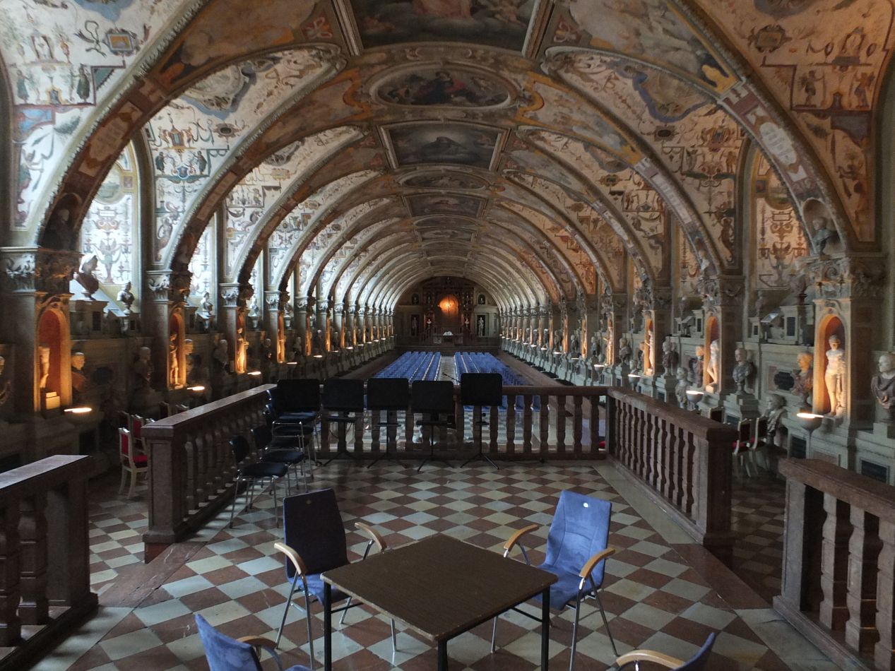 After these initial sections on the ground floor, the Residenz museum largely left visitors free to wander around the rest of the palace and explore at their own pace. Due to the weather outside there were relatively few tourists on this particular day, and once I left the gaudy halls near the entrance behind, the upper levels of the palace were almost deserted. It was a little bit weird to be wandering through one sumptuously decorated room after another with only the occasional other traveler to keep me company. And the place just kept going and going and going! There were close to 100 rooms open to the public, and it takes a long time to walk through all of them. I passed by the china collection of the reigning family, which was laid out on a table large enough to seat a hundred diners at once. I saw endless paintings, huge tapestries that covered entire walls, and sculptures galore. I came across the main church of the palace, and then a second smaller chapel that was even more luxuriously decorated, with even the floor used as a mosaic of precious marble.