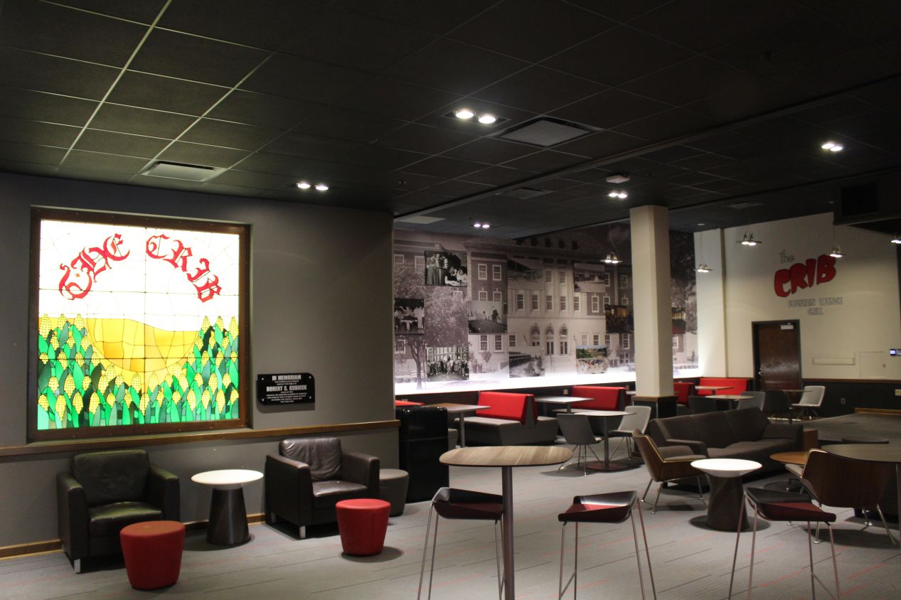 The last place that I wanted to visit for the day was the campus of the University of Nebraska. This is another big state school and the largest to be found by far in the state of Nebraska, but I found that it wasn't quite as large as I'd expected before arriving. Nebraska had about 25,000 students when I visited in 2018, and while that's still a large number, the campus was noticeably smaller than the one occupied by the 45,000 students enrolled at the University of Illinois. I was entering the Nebraska grounds from the south and came across the Nebraska Union almost immediately. I noticed with amusement that "The Crib" lounge and grill area featured a window design with corn growing on it - oh yes, I was in Nebraska, all right! Most of the space in the union was given over to student organizations and administration, with the basement housing the student food court and the university book store. As with most other universities, this was the place to load up on Cornhusker merchandise of pretty much any type imaginable. Nebraska did have one thing that I hadn't seen anywhere else: wearable foam corn hats! I seriously thought about purchasing one but ultimately decided to hold off. What would I ever do with a cornhusker hat anyway?