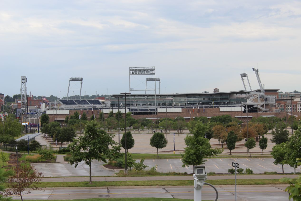 The riverfront district was also the part of Omaha that housed the city's sporting facilities. The first one of these was the arena and convention center; it was known as the CenturyLink Center at the time of my visit, but in the six months between visiting and writing this report the name has already changed to the CHI Health Center (and that wasn't even the original name which was the Qwest Center Omaha). This venue plays host to concerts and similar events when they come to Omaha, and also serves as the home of the Creighton University basketball team, normally the top sporting draw in town. The other big sporting event in Omaha is the College World Series, which is permanently located here on an annual basis. The College World Series is the name given to the competition between the top eight NCAA baseball teams, who come to Omaha each year in June to determine the overall national champion. The games are held in TD Ameritrade Park, built in 2011 as a replacement for the historic Johnny Rosenblatt Stadium which was sadly demolished so that the new ballpark could be constructed on the same site. Everyone who has attended the College World Series always says that this is a fantastic place to watch a baseball game, and the event also brings a lot of money to the city of Omaha each year. I would love to visit and check it out someday. It wouldn't be this year, however, as the College World Series had finished about a month earlier with Oregon State winning the 2018 national title over Arkansas. On this late July morning the grounds were closed and devoid of other people.
