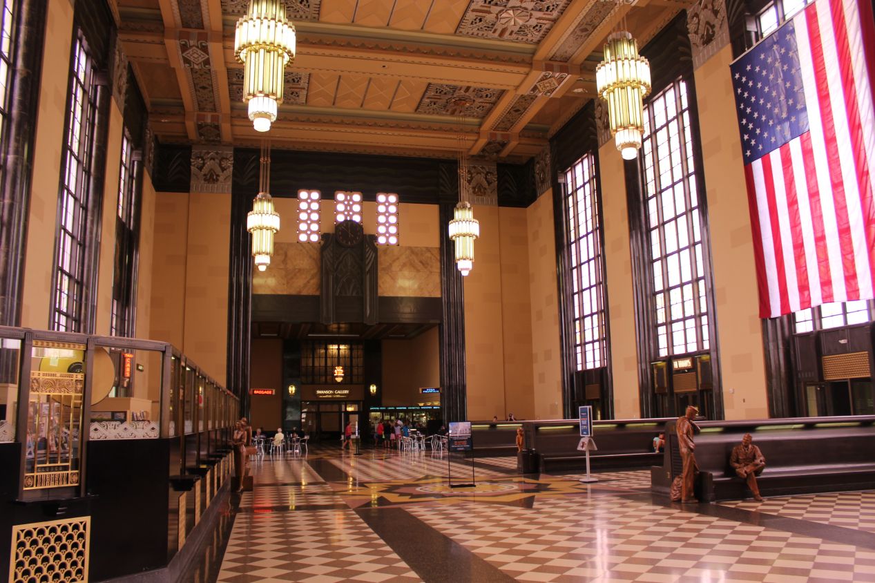The last attraction that I visted in Omaha was the Durham Museum, located to the south of the downtown in a former railroad station. The old Union Station was in use for close to a century before it shut down in 1971, and the Union Pacific railroad company agreed to donate the building to the city of Omaha to be used as a museum. This railroad station has been restored to look as it would have in 1937, right down to posting a train directory detailing what trains came through on a typical day. There's a soda fountain shop that sells refreshments complete with the employees in period costume, and bronze statues of people from the 1930s in various poses scattered about. The real star of the show was the former train station itself, however, with the high ceilings, tall windows, and long room combining to create a cathedral-like atmosphere. This was a beautiful building from an earlier era, and I'm pleased that the city of Omaha was able to preserve it from demolition by turning it into a museum.