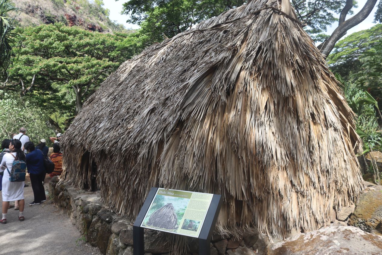 The nature park and botanical gardens at the Waimea Valley hold more than 5000 different species of plants in total which we were able to eyeball as we walked further inland along the main path. I'm not much of a plants guy so I can't relate any particular details about what we saw, lots of verdant greenery with absolutely massive leaves as seen in the first picture above. Some of the individual fronds had to be pushing 10 feet / 3 meters in length! The walking trail also contained some reconstructed houses from traditional Hawaiian society in the hopes of depicting what pre-colonial life would have looked like here. Native Hawaiian society could be rigidly hierarchical in nature and definitely didn't look like it would have been much fun for anyone who wasn't part of the upper class, much like life anywhere in the world in pre-industrial days.