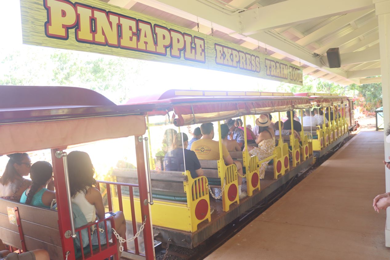 We made one main stop on the drive to the northern coast, pausing to visit the Dole Plantation which is located in the central valley of Oahu about two-thirds of the way to the North Shore. The Dole Plantation was once a place where pineapples were grown in vast quantities but has been converted into a miniature theme park of sorts that serves as a local tourist attraction. Dole is still a massive agribusiness today, among the world's largest producers of fruits and vegetables best known for tropical products like pineapples and bananas, and their corporate branding was visible everywhere around the plantation. We arrived right as the Dole Plantation was opening for the day which turned out to be a good thing because the place quickly began filling up with tourists. We started out by getting in line for the "Pineapple Express", a train ride that circled through some of the former fields of the plantation while educating visitors about how to grow tropical fruits. It was already getting hot outside and the breeze from the train's movement was welcome.