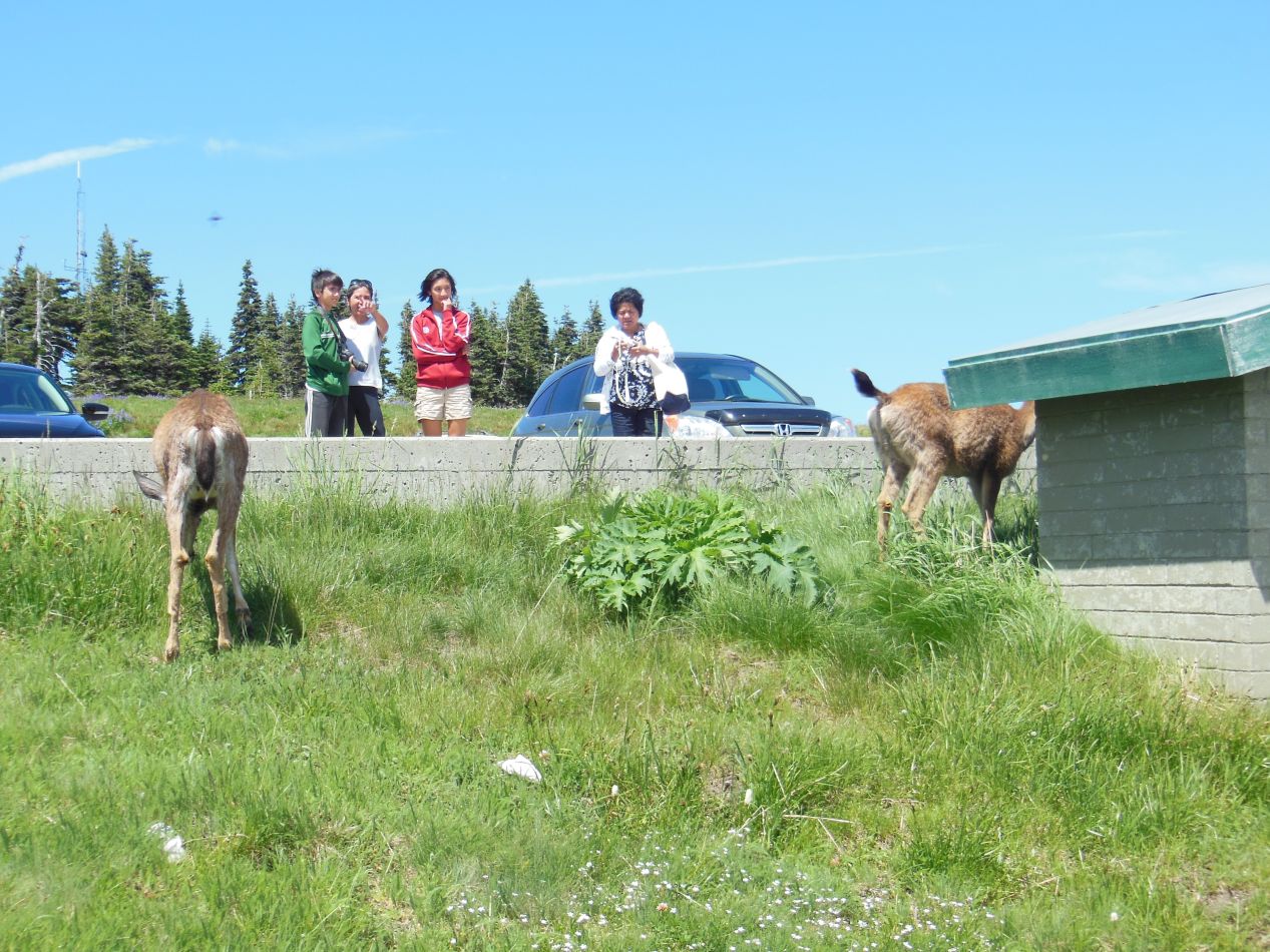 The initial entrance was nondescript aside from the standard National Park Service sign. Nothing as neat here as the overhanging arch entrance that Mount Rainier National Park had featured on our previous excursion. After paying the entrance fee to the park, we drove along a winding road that snaked up into the hills. We were heading for Hurricane Ridge, located in the alpine section of the park's grounds and home to the largest visitor's center in Olympic National Park.