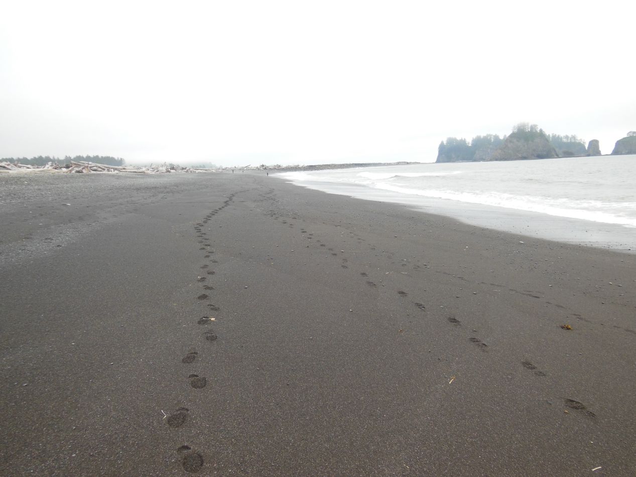 After leaving the Hoh rainforest, we drove further to the west in the hopes of stopping to see the Pacific coastline. We ended up visiting Rialto Beach, a public beach reachable by road that's also contained within the boundaries of Olympic National Park. There's a narrow strip of shoreline that runs for almost 50 miles along the coast, and this forms a discontiguous part of the park separate from the main inland portion. One of the oddities of Olympic National Park is that visitors can hike along the coast for several days taking in the wind and the surf. This particular beach is one of the few areas accssible by road, making it one of the most heavily trafficked parts of the seashort. Despite that fact, it was practically deserted and looked to be one of the emptiest coastal regions that I'd ever seen. I can't imagine how remote the shoreline would look after hiking 20 miles to the north, where there was no road for miles and miles in any direction.