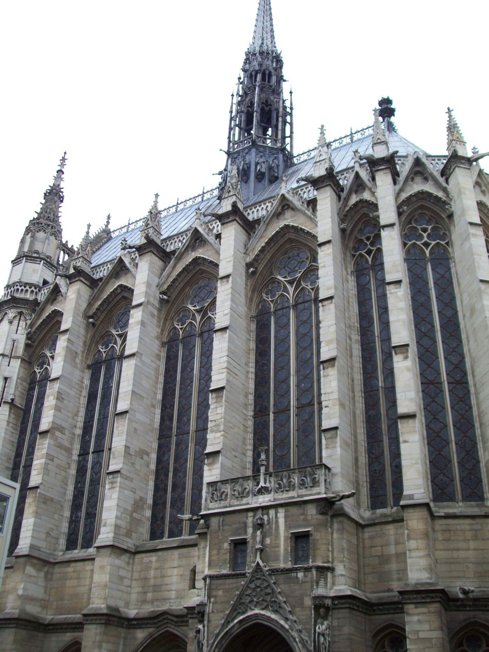 Notre Dame shares the same island with my absolute favorite church that I've ever visited, the chapel of Sainte-Chapelle. This is a much smaller church built by King Louis IX in 1248, designed to house his collection of Christian relics including the Crown of Thorns now held in Notre Dame. Sainte-Chapelle can be easy to miss since it sits inside the complex of the Palais de Justice, a series of government buildings that today holds the headquarters of the French judicial system. Sainte-Chapelle was also constructed in the same French version of the Gothic style used at Notre Dame, but it has the unusual feature of holding two different chapels, one stacked vertically on top of the other. These are pictures of the exterior and the Lower Chapel, which contains the modern gift store and looks fairly unimpressive. My school group came here on my initial trip to Paris in 1999, and as someone who had never heard of Sainte-Chapelle at the time, I was wondering what exactly we were doing here. If someone only visited the Lower Chapel, they would come away thinking that they had wasted their time.