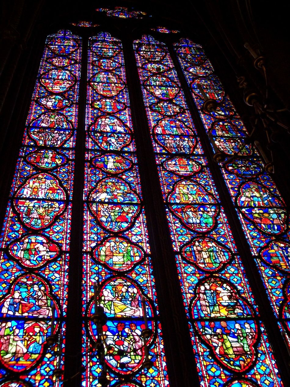 The Upper Chapel is what sets Sainte-Chapelle apart from other medieval churches. The unknown architect of Sainte-Chapelle evidently had the thought, "what would happen if we made EVERY wall a stained glass window?" and set about turning that vision into reality. The result is a dazzling display of light and color that left me speechless the first time that I saw it. Fifteen huge mid-13th-century windows make up an entire side of the chapel above the main altar, while a large rose window of more stained glass takes up the other side. The crummy pictures that I took with this camera truly do not do the place justice; here's a much better version pulled from the Internet. But even that professional photograph sells short the reality of visiting Sainte-Chapelle. The detail on the stained glass is simply incredible, all of those thousands and thousands of individual panes of glass. This stands among the highest achievements of medieval artwork, a living reminder of the inspiration that faith can provide to mankind. Perhaps it's because I first visited Sainte-Chapelle when I was only 16, but I've never found another church that I've liked more than this one. Anyone who visits Paris should make sure to see it.