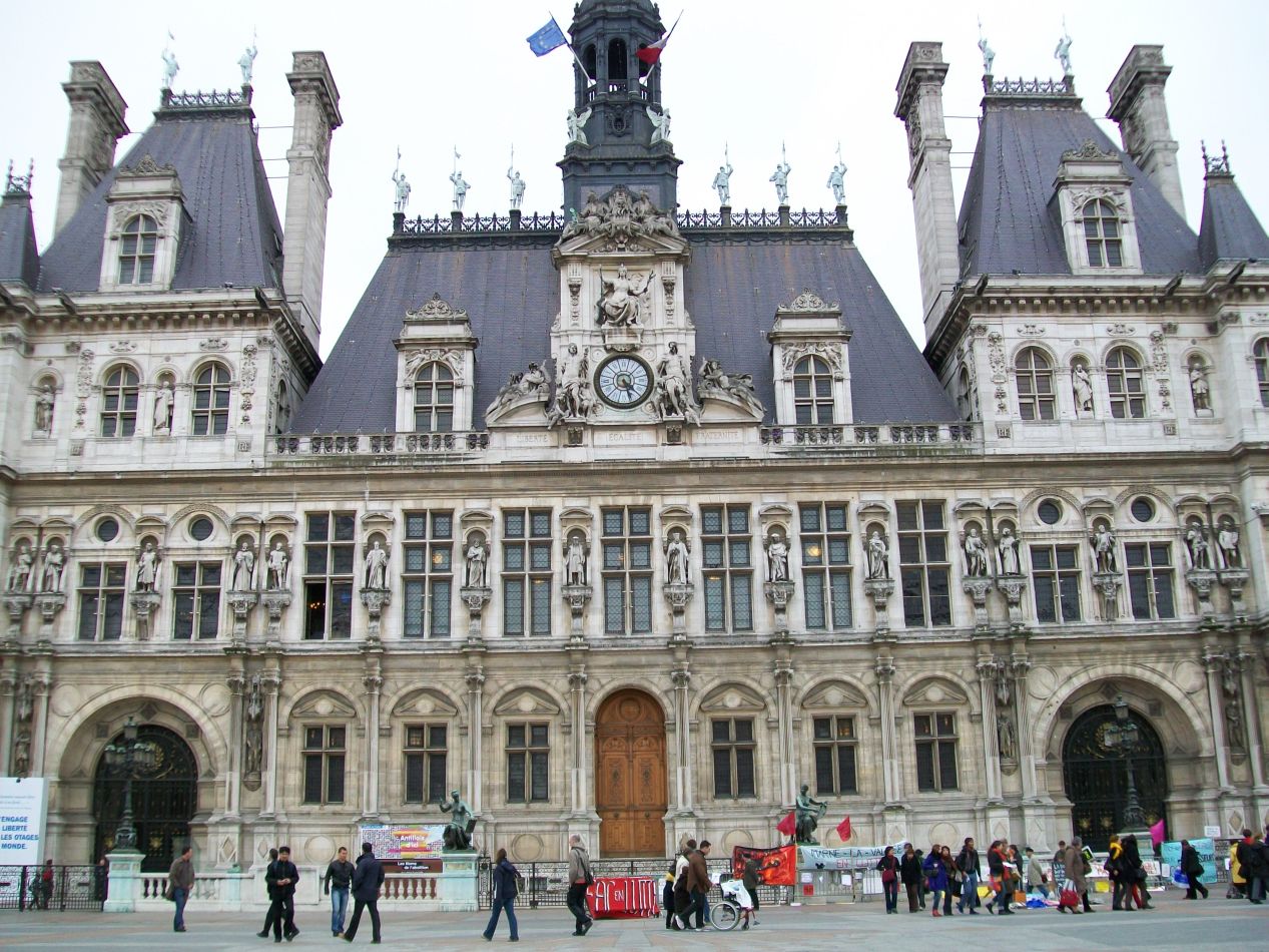 These are pictures of some Paris street scenes on and around the Île de la Cité. Most of the island is taken up with either religious cathedrals or government buildings of some type, leaving little room for restaurants or residential apartments. We crossed over to the north side of the river (the Right Bank or Rive Droite) where there was a protest of some kind taking place in front of the Hôtel de Ville, the City Hall building of Paris. Whatever cause the protesters had in mind didn't seem to attracting much attention this day. The random-looking tower standing by itself was Tour Saint-Jacques, or Saint James Tower, all that remained of the former 16th-century Church of Saint-Jacques-de-la-Boucherie. The rest of the church was torn down in the French Revolution with only the solitary 50 meter / 170 foot tower remaining. I once wrote that the city of Budapest almost had too much history due to how many different groups of people had fought over it across the centuries, and I think the same logic can apply to Paris as well.