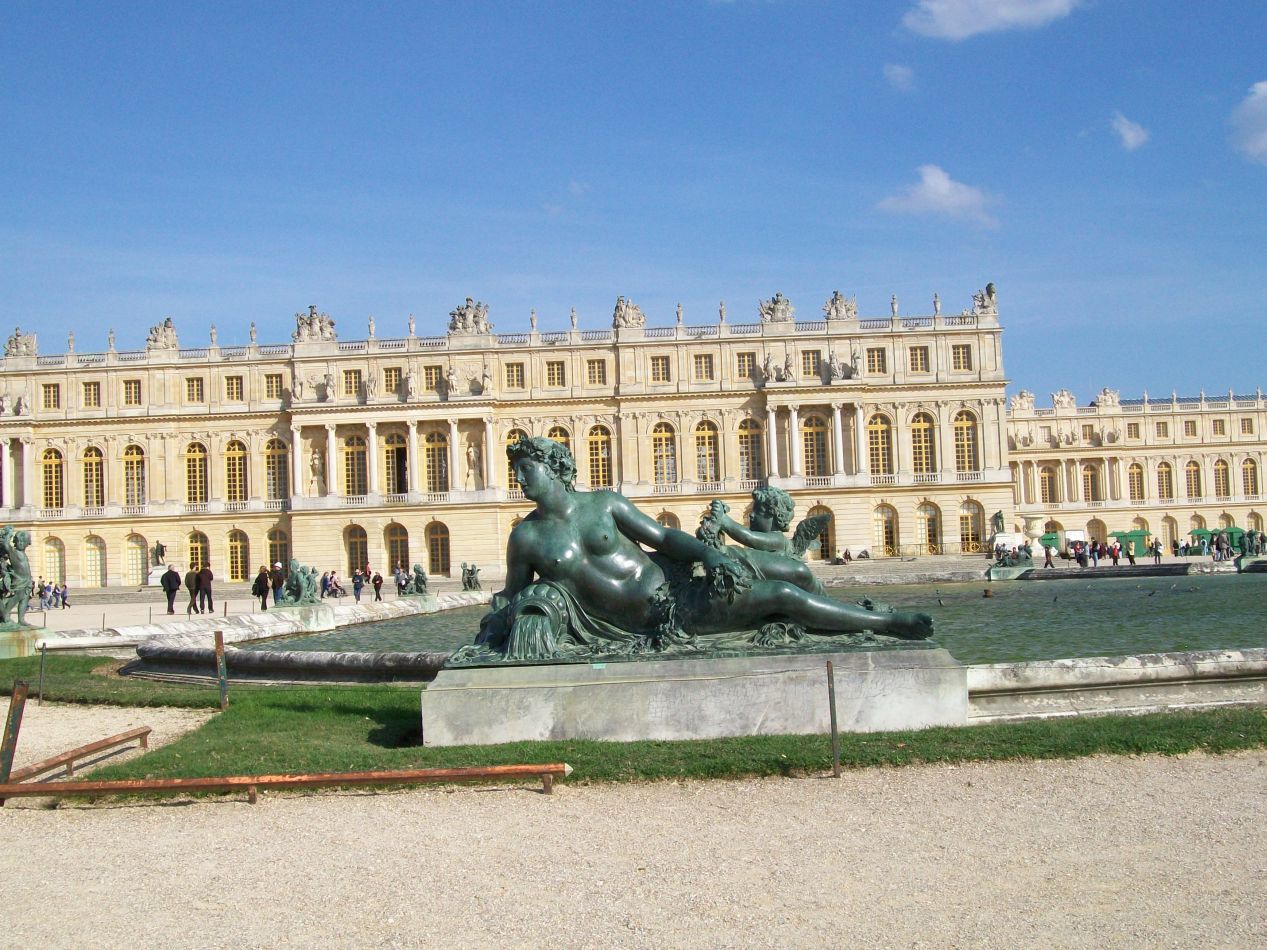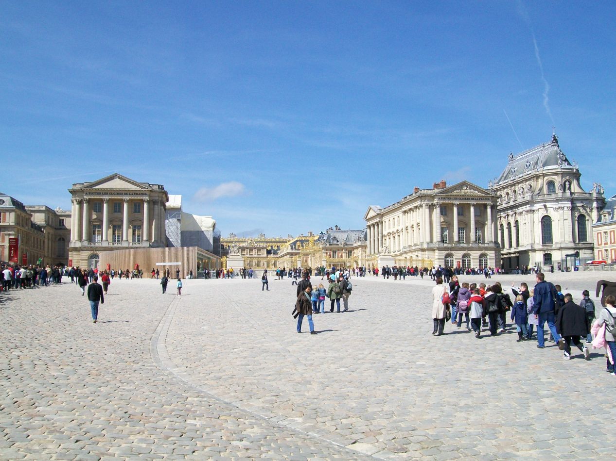 The following morning dawned bright and sunny, a welcome change from the gloomy conditions of the previous day. We were headed to the Palace of Versailles for this day's sightseeing, the former residence of the kings of France constructed at vast expense by Louis XIV. Versailles is located about 12 miles / 20 kilometers outside of the center of Paris, easily reachable by a short ride on the RER train from the downtown. This was where Louis XIV decided to turn a small hunting lodge into an enormous royal palace in the last few decades of the 17th century, eventually moving his entire court here to get away from the city. Versailles figured heavily into the events of the French Revolution, as the people of Paris repeatedly stormed the palace to secure the royal family and prevent them from fleeing the country. It was later used for the signing of major treaties following the Franco-Prussian War and again after World War I. Today Versailles is the second-most visited tourist attraction in Paris after the Louvre, with almost 8 million people coming annually. Here's a crucially important tip for anyone who might be visiting Versailles: get here early in the day right when the place opens. The lines for entry can get very long and it's easy to waste an entire day standing around outside the entrance. We arrived when Versailles was opening and only had a minimal wait for entry.