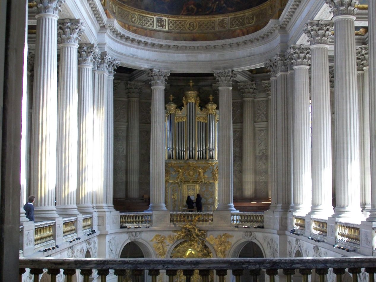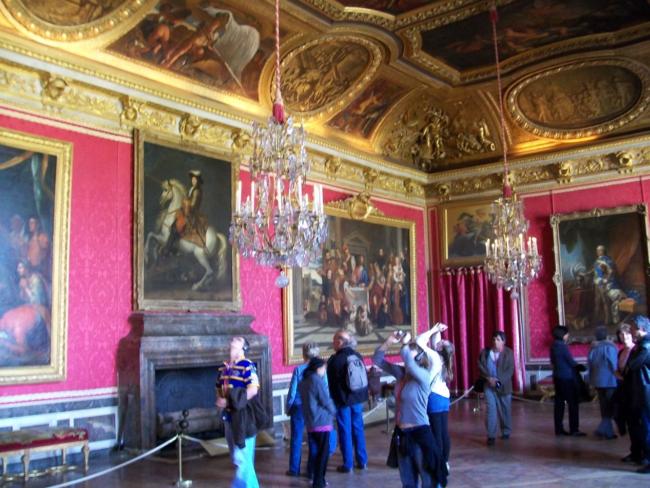 Versailles uses an audio tour for visitors, and unlike the strict rules at Vienna's Schönbrunn Palace, tourists get to see most of the Versailles complex and can freely take pictures along the way. The tour begins by taking visitors to the Versailles Chapel, which dates from 1710 and makes heavy use of marble and gold leaf designs. The use of the Greek columns indicates that this was the beginning of a transition period in architecture from the Baroque style to the Neoclassical style that came into vogue later in the 18th century. The main architectural design at Versailles is known as "Louis XIV", with the building being famous enough to get its own name since it was widely imitated elsewhere. This styling represented a fusion of Baroque Italian villas with French classical design, ending up with a result that is probably best described as "opulent". Wealth practically oozes out of every corner of the Versailles interior, whether it's the constant use of marble as a building material, the gold leaf applied to seemingly every surface, or the hand-painted ceilings in every room. It's incredible to walk through the palace and see this level of detail applied to every surface of the building.
