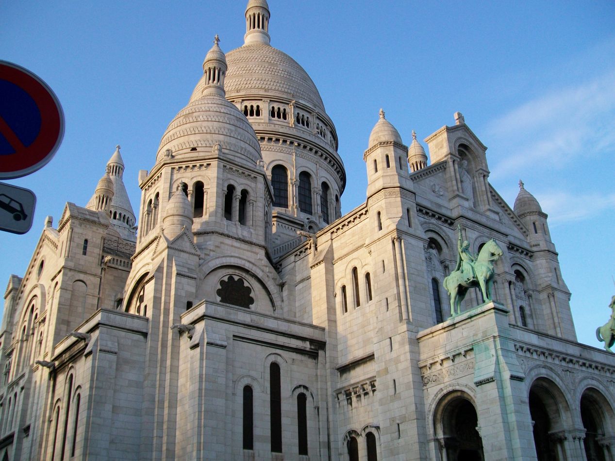 Sacré-Coeur de Paris was the attraction that we had come to see. This basilica was constructed following France's defeat in the Franco-Prussian War of 1870-1871, and although today it has come to be viewed as a symbol of national reconciliation following the end of the war, it was originally intended as an attempt by French conservatives to attone for "a century of moral decline" that culminated in the Paris Commune. Sacré-Coeur was built on top of the tallest hill in the city out of white stone bricks in an unusual Romano-Byzantine style of architecture. The narrow domes used on Sacré-Coeur tend to be more associated with Greek or even Islamic religious architecture more so than the Gothic and Baroque designs elsewhere in Paris. This helps to make the basilica stand out from the rest of the churches in the city, and it's one of my favorite churches to visit even though they don't allow interior photography for some reason. (Here's a picture of the interior from elsewhere on the Internet.) The views from the steps of Sacré-Coeur looking out over the rest of the city are also pretty spectacular. We had dinner afterwards at one of the restaurants at the nearby cobblestone-lined Place du Tertre, capping off the end to a wonderful first day.