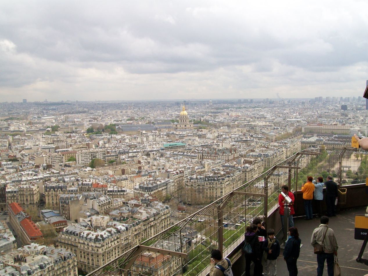The Eiffel Tower naturally provides excellent views overlooking the rest of the city. These were taken from the second floor a little bit less than halfway up the tower, and there's a final viewing platform up near the pinnacle of the tower which we did not visit on this trip. The Eiffel Tower is situated on the southern side of the Seine River (the Left Bank or La Rive Gauche), and we could look off into the distance to spot the domes of Sacré-Coeur far away to the north as well as the closer golden dome of Les Invalides where we were headed next. Immediately across the river to the northwest of the Eiffel Tower were the Trocadéro Gardens and the Palais de Chaillot museum, the spot used by most television broadcasts that have the tower in the background. (Whenever there's an international soccer match in Paris, this is where the TV studios place their pre-match and post-match sets.) In the other direction to the southeast was the Champ de Mars, a large public park formerly used for marching and drilling by French soldiers. It was early enough in the day that the tour buses were only beginning to roll in, and the Champ de Mars was lightly crowded with visitors heading to the tower.