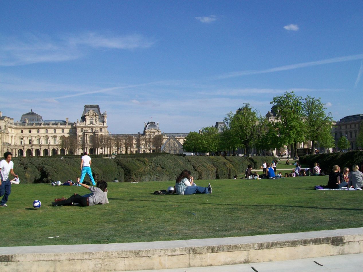 I suggested that a good first activity to do in Paris would be to stroll from our starting point near the Louvre through the Tuileries Gardens and then up the famous Champs-Élysées towards the Arc de Triomphe. This is one of the most famous walks in the world and it's an easy distance to cover at about 1.5 miles / 2.5 kilometers. We started out at the western edge of the Louvre complex, near the location of the Carrousel Arc de Triomphe. This bite-sized version of the Arc de Triomphe was also built by Napoleon in 1806 to commemorate his sweeping victories that took place the previous year at Ulm and Austerlitz. The nearby Tuileries Gardens were formerly part of the Louvre complex where an extention of the palace once stood, only to be damaged severely in the 1848 revolutions and then destroyed entirely by the Paris Commune in 1871. The ruins were eventually turned into the public park that we walked through as we headed towards the Champs-Élysées. It was a perfect spring day and there were lots of people outside enjoying the fine weather. It was easy to forget that the outdoor square now containing fountains and the Luxor Obelisk was the Place de la Concorde, the site of mass public executions during the French Revolution, including the spot where King Louis XVI was killed.