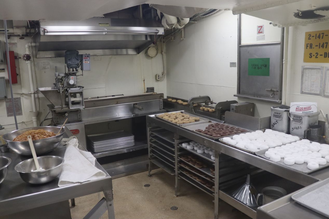 The huge kitchens where the food was prepared each day were another one of the more interesting parts of the walking tour through the ship's interior. The Missouri contained a bakery and a pastry shop in addition to its main kitchen and the food options on the preserved menus looked pretty decent all things considered. (Whether the menu options were always this robust is a good question.) We also walked past a small sample of the claustrophobically-small living quarters for the enlisted men which consisted of little more than a bunk bed and a truly miniscule locker. There was next to nothing in the way of privacy for these sailors and trying to sleep in turbulent weather while crammed into these bunks like sardines in a can had to have been a truly miserable experience. The Missouri held 1804 enlisted men along with 117 officers when it was fully outfitted, and short of serving on a submarine it was hard to find a place where space was at more of premium.