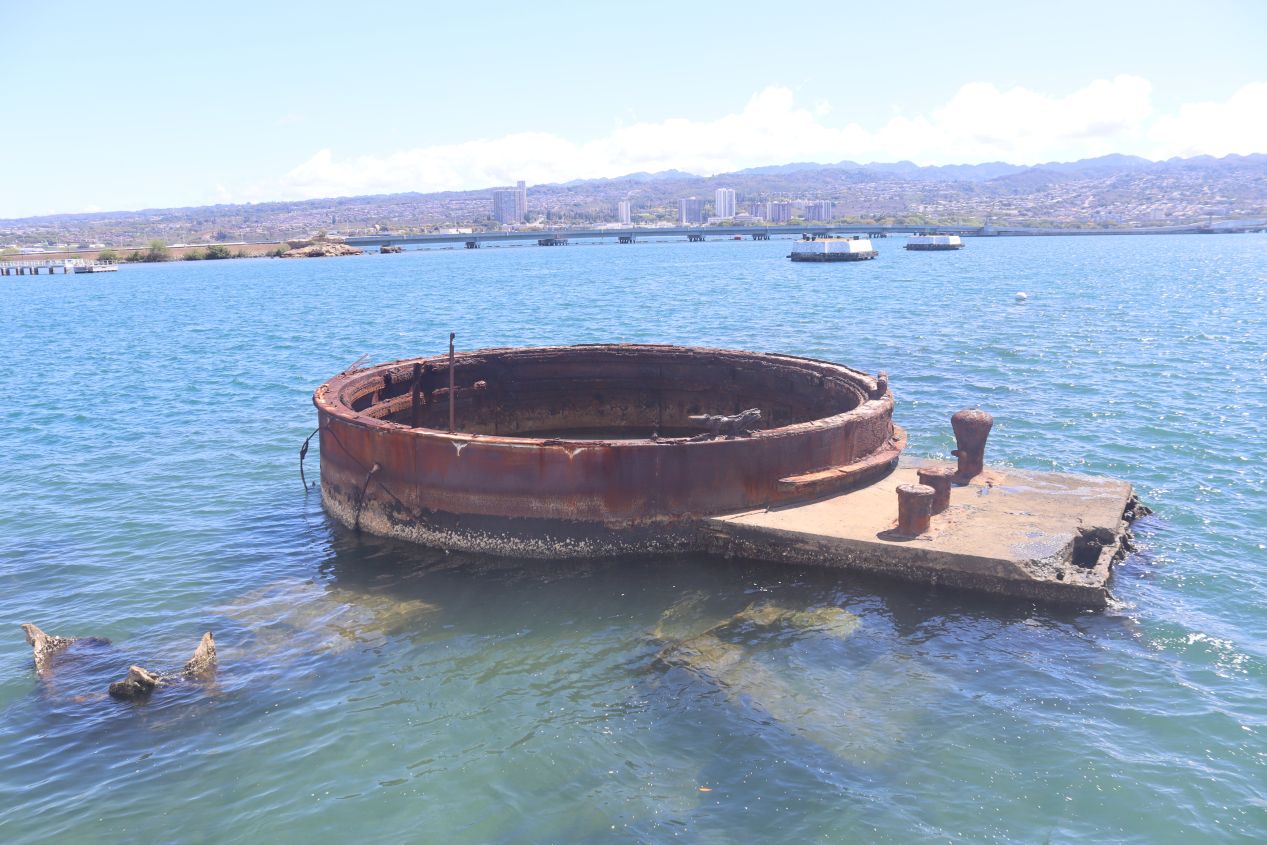 Not far away from the USS Arizona Memorial sits its sister ship the USS Missouri, another battleship that was launched in 1944 after the attack on Pearl Harbor and has since been converted into a floating museum in its own right. The formal Japanese surrender that ended World War II took place on the decks of the Missouri and these two ships have been placed next to one another to symbolize the beginning and ending of the conflict (from an American perspective at least). I had heard that oil is still slowly leaking from the wreck of the Arizona and sure enough we spotted occasional dark spots floating up to the surface before being washed away by the local currents. Even though this is somewhat of an environmental hazard, the amount of oil leaking into the water is minimal and the US military has been adamant that they do not want the Arizona's wreck cleaned up so that it can remain in its undisturbed state. The drops of oil leaking from the ship have often been referred to as "the tears of the Arizona" and the symbolism couldn't be more apparent. It really does appear as if the broken remnants of the ship are mourning its fallen crewmembers with this trickle of inky tears.