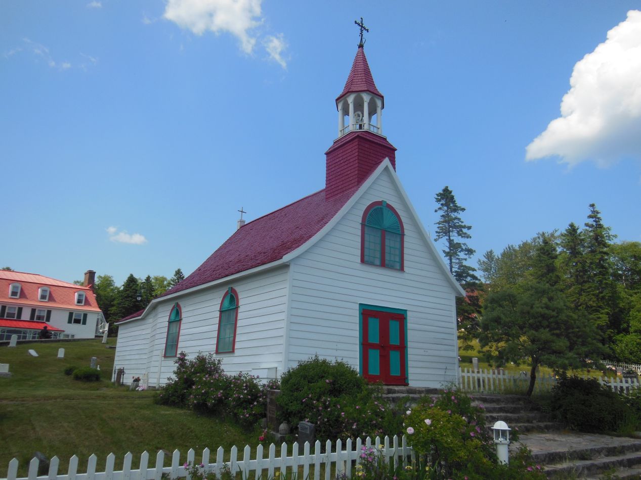 The town of Tadoussac stood at the northern end of the ferry service. This place is best known for the role it played in the early colonial period, where it was the site of a trading post between the French and the First Nations people living in the northern Saint Lawrence region. There was a permanent French presence in this region since the year 1600, although the initial French settlers numbered only in the dozens, not the hundreds or thousands. Today Tadoussac is a sleepy little town that sees an infusion of tourists in the summer, and likely remains almost empty for the rest of the year. The highlight was the Hotel Tadoussac, a two-story white building with a central belltower. The place is known for its distinctive red roof and dates all the way back to 1864. There were also a number of reconstructed wooden buildings designed to replicate the French trading post from the 17th century, the original buildings long since having crumbled to dust. This was a place that seemed to want to live in the past during the days of the New France colony. The other attraction was apparently the beachfront area, although the water was cold enough that I didn't think swimming would be too pleasant. (As always, some kids were in the water regardless.) This looked like a beautiful place to take a trip out on a boat, either on a pleasure cruise or in the hopes of seeing some wildlife.