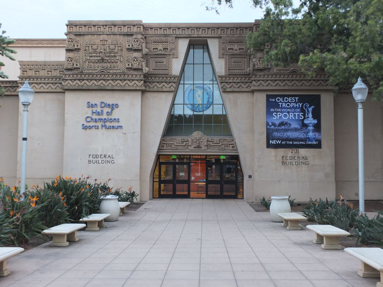 After leaving Petco Park, I took a lengthy walk north about a dozen city blocks to Balboa Park. This is the big public park area for the city of San Diego, and it plays host to most of the city's museums as well as the famous San Diego Zoo. The light was already fading as evening descended, and there would be no time to visit the zoo on this trip. Instead, I walked past a number of the museums which were themselves shutting down for the night, such as the Air and Space Museum and the Hall of Champions Sports Museum. I wandered into an open space named Spreckles Organ and Pavilion, an outdoor theatre with an organ constructed for the 1915 California-Panama Exhibition. This early 20th century architecture was noticeably different from the Spanish Colonial style that was common elsewhere in San Diego, instead using the white marble and thin columns of Italian Renaissance design. While the outdoor theatre was deserted on this night, it's a place that plays host to various civic events in the summer months.