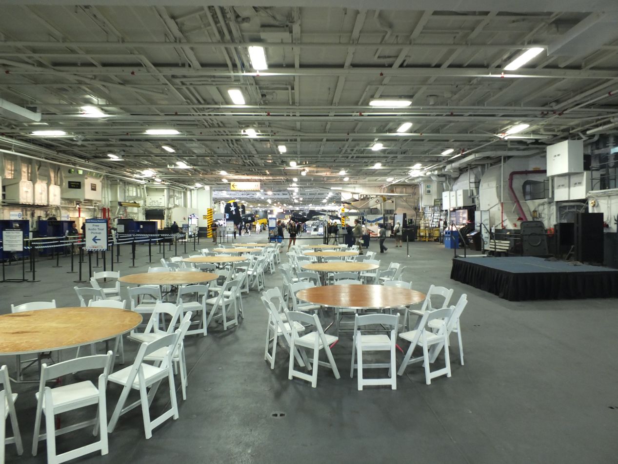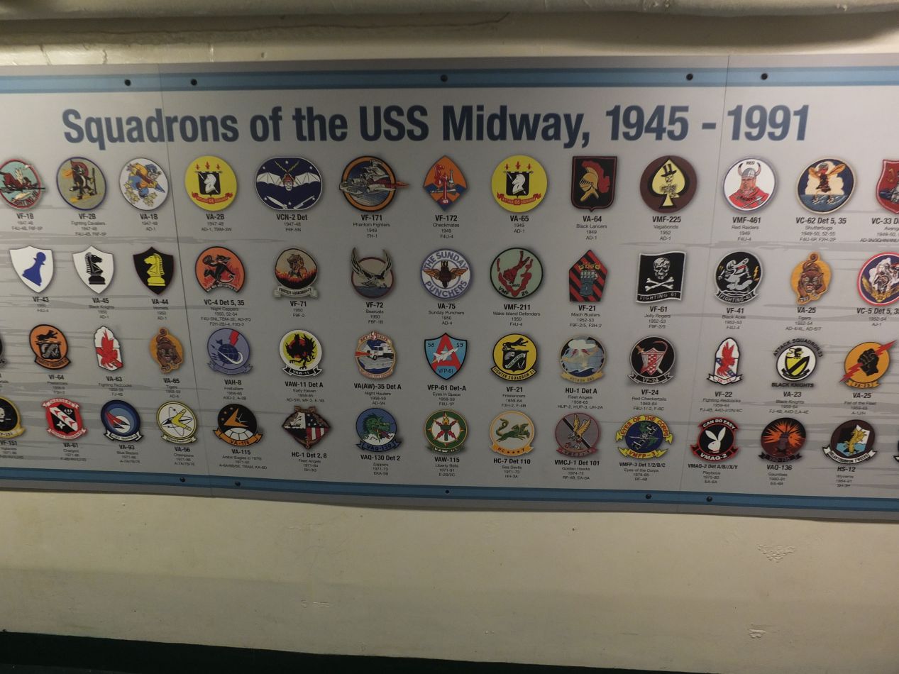 Other parts of the ship held some of its working functions. The room pictured at the top with the yellow seats was a briefing room where pilots were given their orders before launching on missions. Again, this was a real carrier that took part in a dozen different wars or peacekeeping missions, and some of the pilots stationed on the Midway didn't come back from those missions. In recognition of this, the insignia of all of the flight squadrons that had been stationed on the Midway are kept in a tribute on the wall. Elsewhere, visitors were also able to walk through the engine room and see some of the giant machinery used to power the ship and keep it moving. This was one of many places throughout the tour where former crew of the Midway were on hand to answer questions and explain more about the history of the ship. The engine room was also the source of the worst accident in the Midway's history, an explosion that killed three crew members in 1990 and led to a minor political incident at the time.
