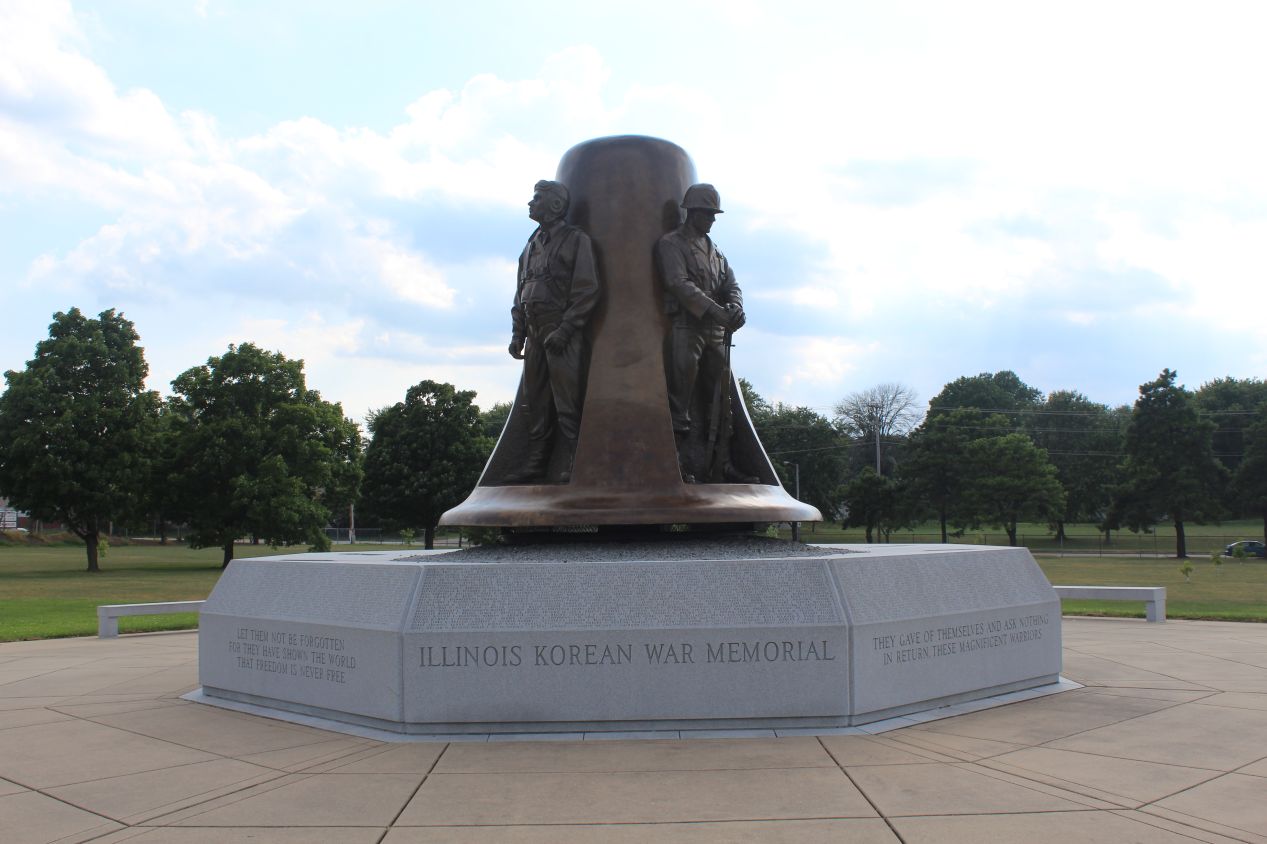 The rest of Oak Ridge Cemetery contains the graves of many Illinois veterans, and I noticed several additional monuments when I was preparing to leave. There was a Vietnam Veterans Memorial that honored the almost 3,000 Illinoisans who died in that conflict, and nearby a similar Korean War Memorial dedicated to the 1700 residents of the state who died in that earlier war. More recently, the cemetary added a World War II Illinois Veterans Memorial in 2004 to pay tribute to the much larger number of individuals who served in that conflict, with 987,000 Illinois men and women serving and 22,000 giving their lives. Unlike the small number of people at the Lincoln Tomb, there wasn't even a single soul here at this collection of memorials. I thought that it was only fair to spend a few minutes here to honor the dead from these overseas wars.