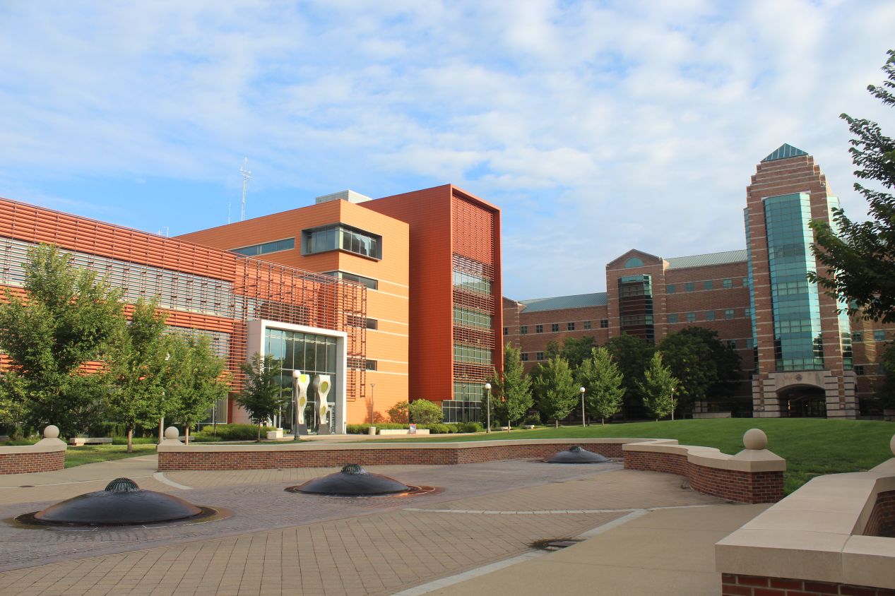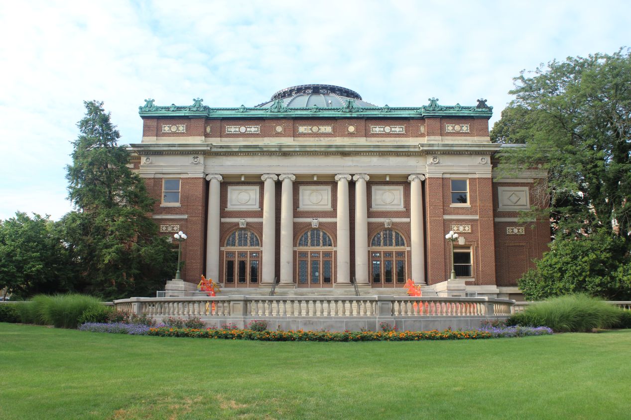 Further south beyond the Illini Union was the campus main quad, the largest green space on the Illinois grounds. The union sits at the northern end of the quad while Foellinger Auditorium, the round building pictured above, anchors the southern end. Unfortunately this historic building from 1907 was locked when I checked to see if I could go inside; it houses the largest lecture room on the Illinois campus. Immediately behind the auditorium was the undergraduate library, but there was no structure to be seen in this case because most of the library is located underground. The university is known for its gigantic library collections, which are supposed to be the second-largest at any American university behind only Harvard. There was yet another quad located to the south of the undergraduate library, this one known as the South Quad, and by this point I was starting to wonder at the size of the Illinois campus. It was almost 1.5 miles from the northern end of the campus to the southern end; this place just kept on going and going. That was probably the biggest surprise of my visit, the huge size of the university. Illinois has 45,000 total students (as of 2018) and that was significantly larger than the other universities that I'd seen thus far on my trip.