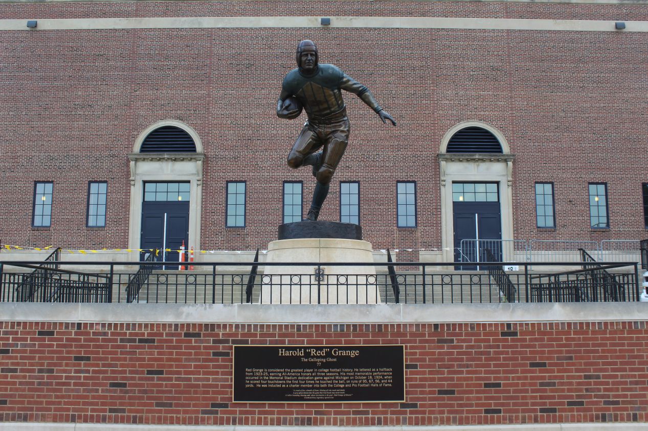 I turned west on Peabody Drive and walked towards the athletics complexes at the southern edge of the Illinois campus. The most distictive structure was Memorial Stadium, the home to the football team, with its brick facade and Greek columns along the sides. The stadium is old enough that the "memorial" in its name refers to Illinois students who died in the First World War, not the Second, and the football team has been playing here since 1923. The current seating capacity is about 60,000 and that makes Memorial Stadium one of the smaller locales in the Big Ten conference. There's a statue to Red Grange outside one of the side entrances, which proudly proclaims that he was "the greatest player in college football history", a rather bold claim indeed given that Grange played from 1923-1925. The fact that Illinois is still advertising the exploits of a player from nine decades earlier pretty much tells the story of their football program, which has been a doormat for decades. Technically Illinois football has won five national championships, but they date from 1914, 1919, 1923, 1927, and 1951 - all of them well before the modern era. The team has similarly won 15 Big Ten conference titles, but again only three of them have come since 1963 and only one of them has occurred in the 21st century. Based on the 2018 incarnation of the team, Illinois football doesn't look to become a powerhouse any time soon.