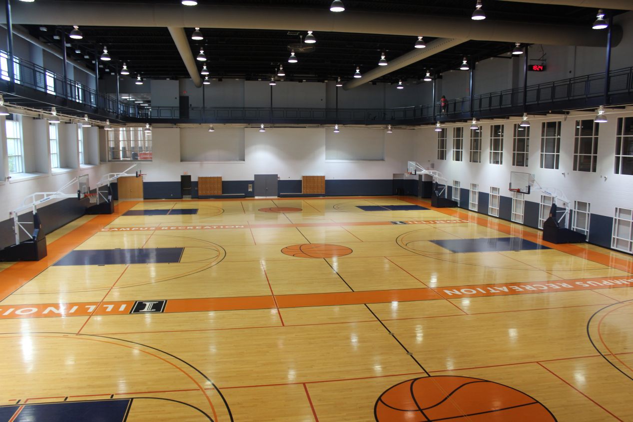 Illinois basketball has been much more successful in recent memory, routinely ranked in the Top 25 and with a visit to the national championship game as recently as 2005 (which they lost to a stacked North Carolina team). The basketball team plays in Assembly Hall, the uninspiring concrete dome pictured above that dates back to 1963. It's a tough place to play a road game and the arena is frequently full of raucous students on those cold winter nights when the team is playing. The basketball court pictured above is not from the arena, but rather from the student recreation center on campus, which is located near the football stadium. I was able to go inside and take a quick look, but couldn't actually use anything inside without a student ID. I headed north from there up Wright Street and stopped in the Illini Union Bookstore, which had two full floors of Illinois merchandise. While I personally don't think that orange and blue is the most attractive color combination, I suppose it works for them. Finally, the stone building pictured above is Altgeld Hall, built in 1897 in Romanesque style to house the university's architecture program. It currently houses the math department, and the tower contains its own set of bells that perform special concerts. Aha - you knew there had to be a memorial bell tower located somewhere on the campus!