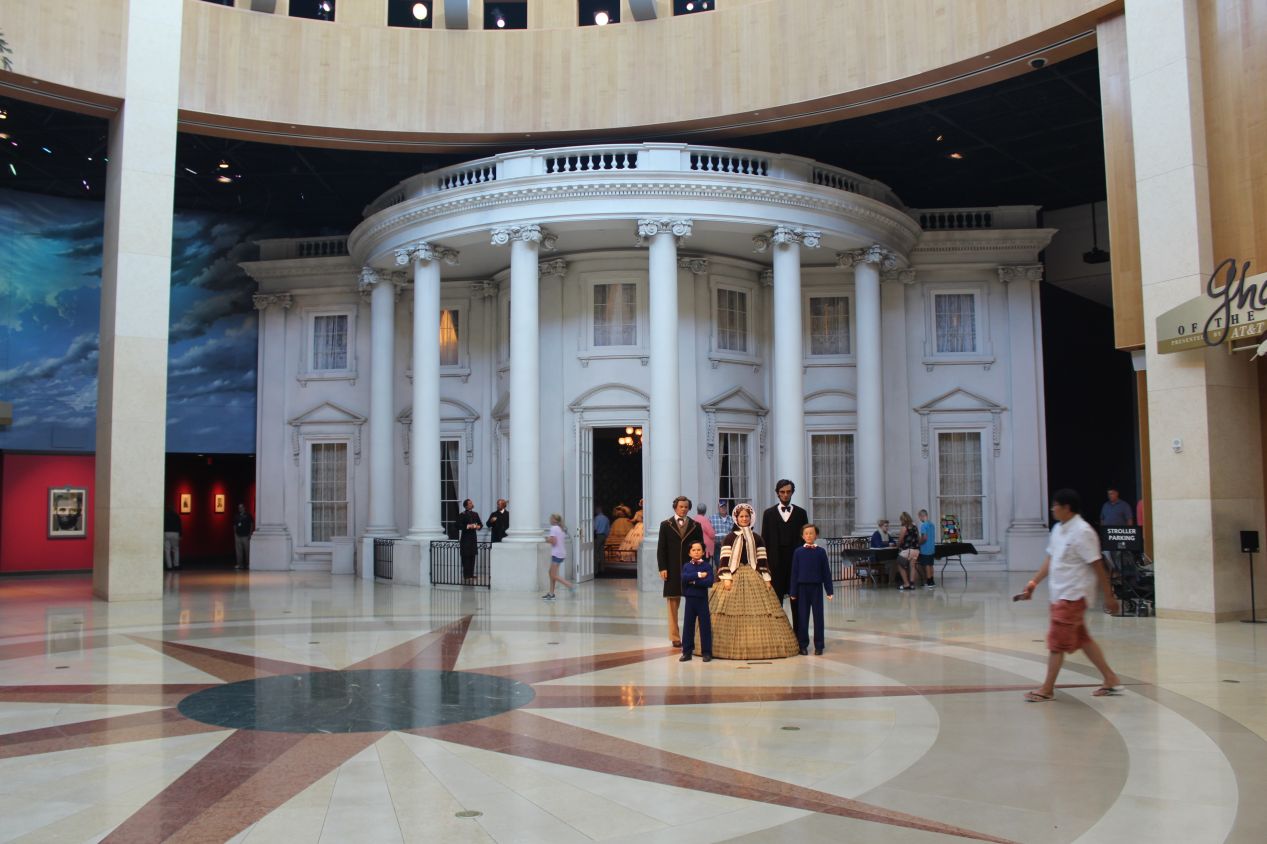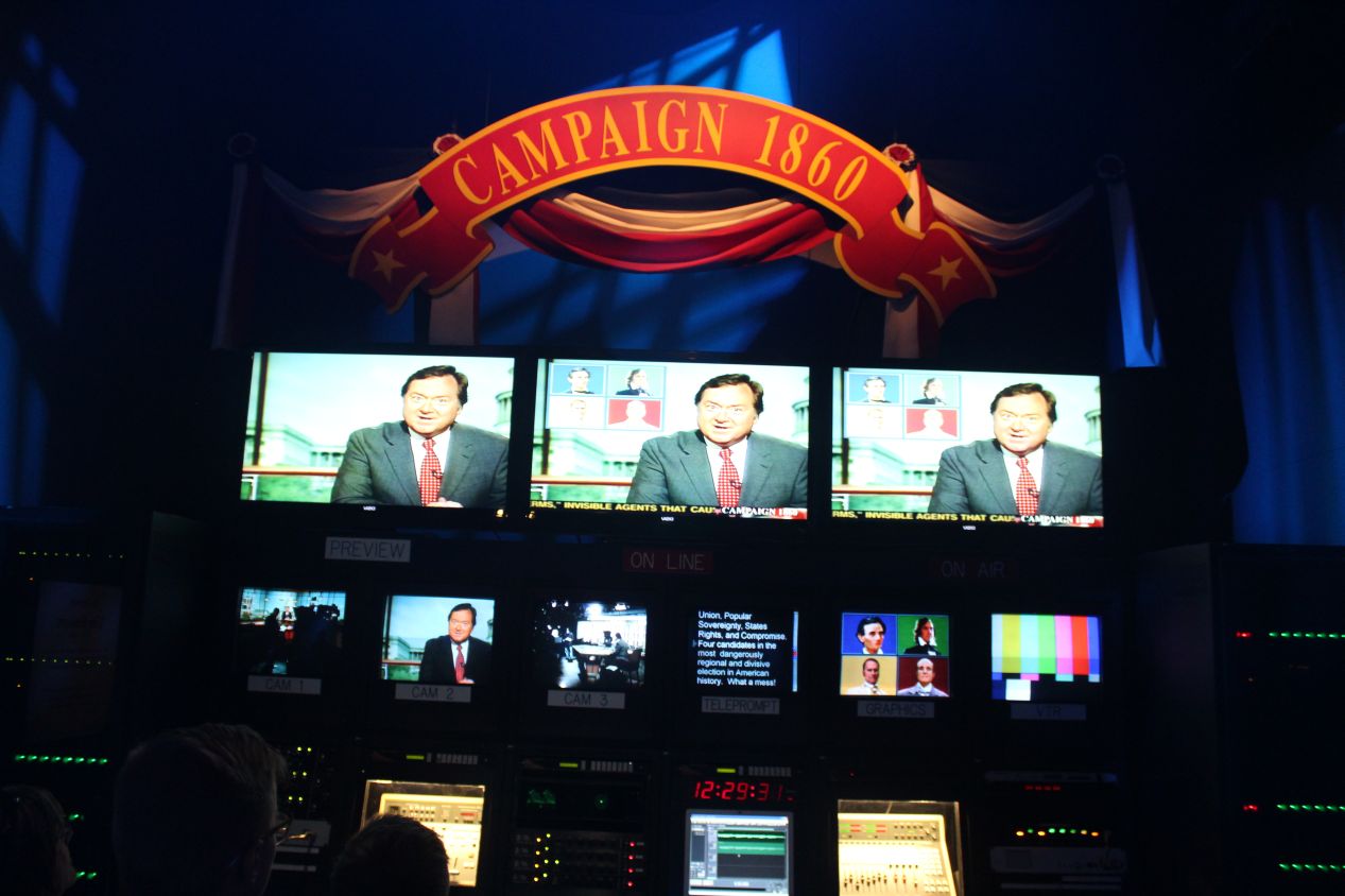 The featured exhibit at the museum runs through two parts, chronicling the life of Abraham Lincoln first in his pre-presidential days and then after he was elected to the White House. The first part started with displays of Lincoln as a boy growing up in a log cabin (including a full reconstructed log cabin with replica Lincoln inside), then moved on to Lincoln's political campaigns, most of which were failures prior to winning the presidency. There was a fantastic video here featuring the late Tim Russert that pretended to apply the modern cable news cycle to the election of 1860, complete with fake TV campaign ads for Stephen Douglas and John Breckinridge. Fantastic stuff. Then the second part of the exhibit led visitors into a model of the White House and walked them through the many controversies of the Lincoln administration as the Civil War raged in the background. I appreciated the room full of political cartoons demonstrating how Lincoln was often controversial and not at all popular during his presidency, and a series of photographs from 1860 to 1865 in which it looked like he aged three decades over those five years. There was a particularly well done room covering the issuing of the Emancipation Proclamation, with voices of about a dozen different perspectives arguing for and against the document. As a history Ph.D myself, this was great stuff and really helped to put people who had little background on this period of history into the biggest issues of the day.
