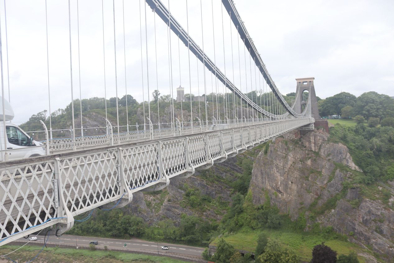 Finally, the last place that we visited in Bristol was a stop on Friday morning as we were literally driving out of town to head off towards Cardiff. This was the Clifton Suspension Bridge spanning the gorge created by the River Avon, located just to the west of Bristol a few miles from the center of the city. We were actually trying to make it to Clifton Observatory (visible in the second picture above) but couldn't find a place to park and accidentally found ourselves forced to drive over the bridge, then parked on the western side of the cliffs and got out to take these pictures. Clifton Suspension Bridge was based on a design by Isambard Kingdom Brunel and was opened to the public all the way back in 1864. It took decades to build the bridge and its completion was a major engineering achievement of the mid-19th century. The bridge has remained in constant use since then, with more than 4 million people traversing it annually. This was the site of the first modern bungee jump in 1979 and, more unhappily, has been the location of dozens and dozens of suicides over the decades. In any event, Clifton Suspension Bridge is celebrated as one of the major symbols of Bristol and we definitely saw tourist merchandise with the bridge on it for sale in the city. It was a nice way to close out our time in Bristol.